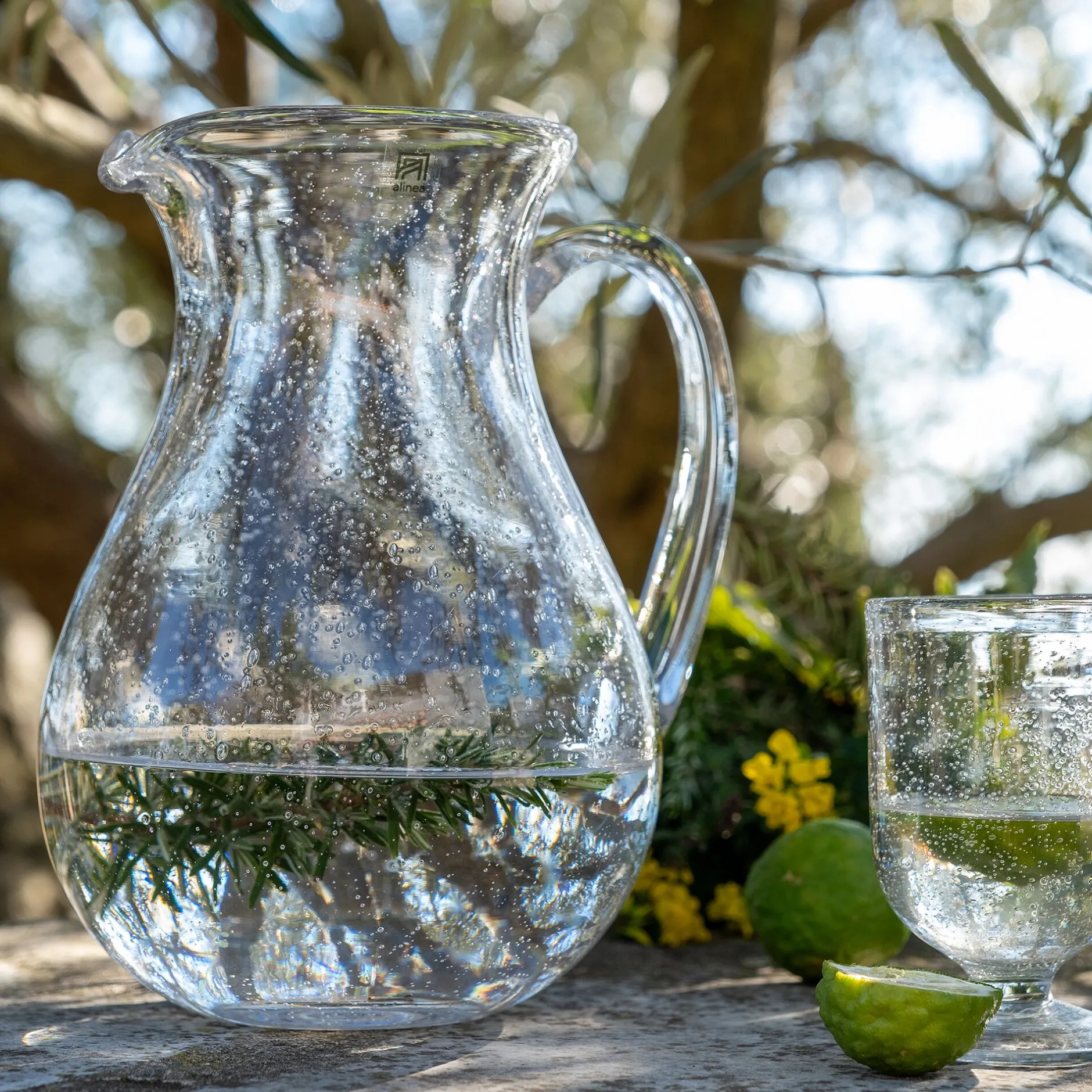 Cette carafe en verre bullé est un véritable bijou pour votre table. Ses petites bulles délicatement piégées dans le verre créent une profondeur fascinante, ajoutant une touche d’authenticité et de charme à chaque utilisation. Dans un style traditionnel, elle est dotée d’une anse qui facilite le service de l’eau. Sa transparence permet d’admirer les mouvements de l’eau, ajoutant une note rafraîchissante à votre art de la table. Ce pichet en verre combine esthétique et fonctionnalité, apportant une touche intemporelle aux repas.