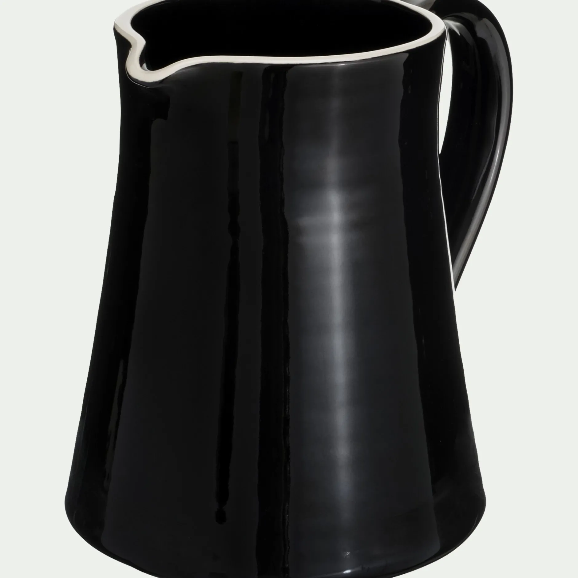 Cette carafe en grès noir est bien plus qu’un simple pichet : c’est un élément de vaisselle qui ajoute une dimension saisissante à toute table. Avec son allure élégante et sa silhouette traditionnelle, elle incarne l’authenticité et le raffinement. L’anse et le bec verseur confèrent un côté pratique à cette carafe de 2L. Mais c’est surtout son coloris noir profond qui attire l’attention, créant un contraste saisissant et étonnant sur la table.