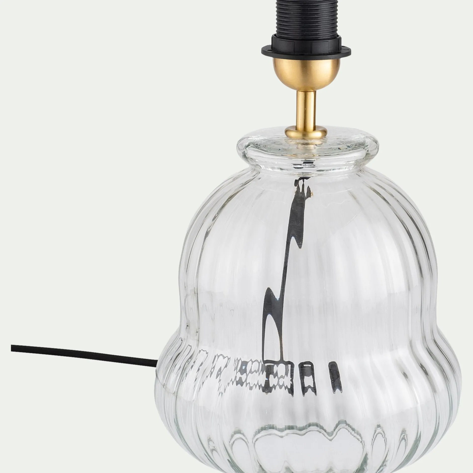 Ce pied de lampe électrifié en verre transparent se distingue par son design élégant et organique. Sans abat-jour, il laisse libre cours à la créativité pour le compléter selon vos envies et créer un luminaire unique et personnalisé. Le verre subtilement strié ajoute une touche de texture et de relief, captant la lumière pour accentuer ses reflets.