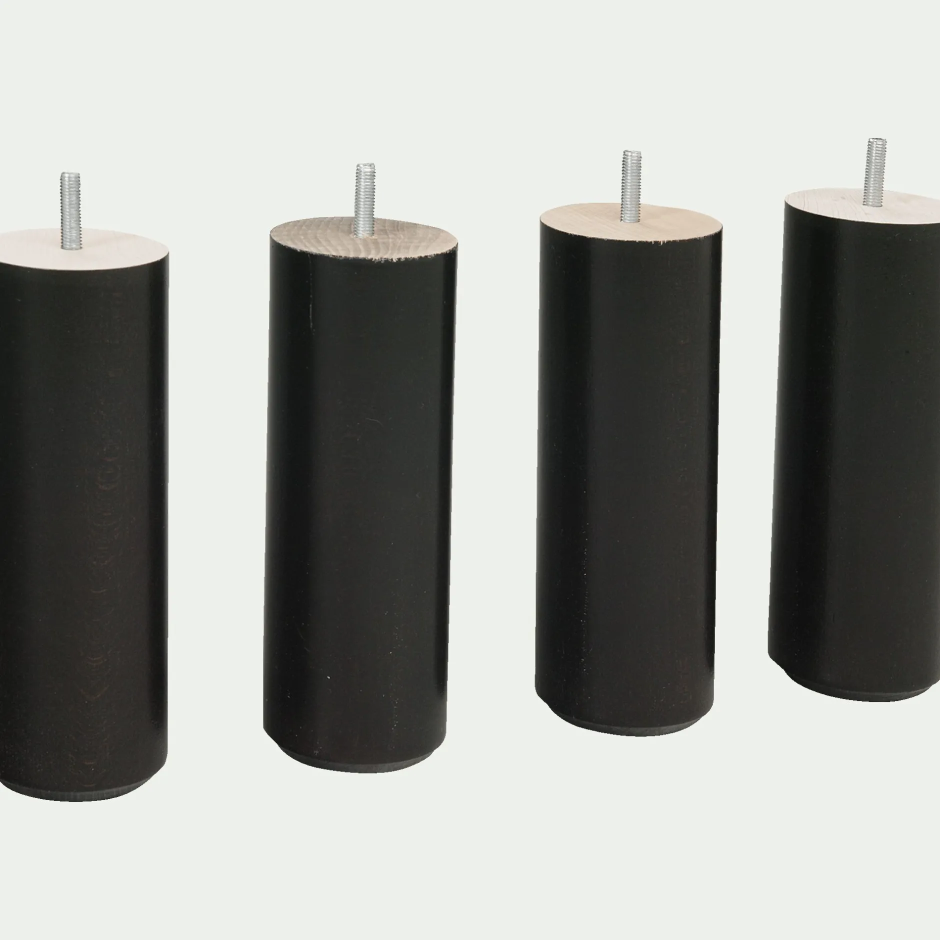 Un jeu de 4 pieds en hêtre massif avec une jolie finition wengé… A adapter sur tous les sommiers tapissiers.