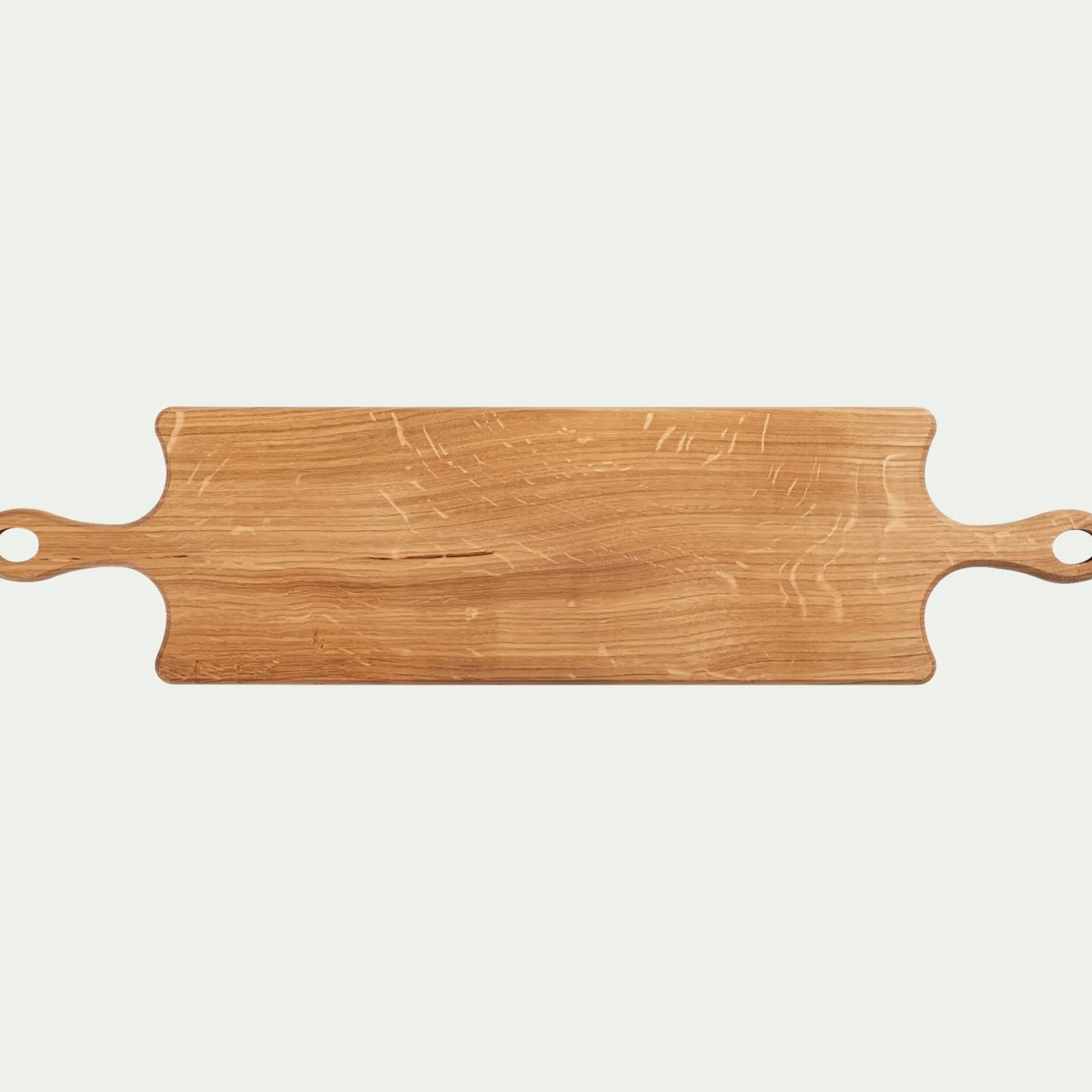 Cette planche à pain en chêne est idéale pour découper votre pain et le présenter à table. Découpez tous types de pain et disposez les tranches sur cette planche de 61,59 x 15 cm. Son matériau lui permet d’être résistante aux chocs et d’avoir une longue durée de vie afin de pouvoir l’utiliser pendant de longues années. Cette planche pourra donc vous accompagner lors de nombreux repas, vous n’aurez qu’à la déplacer à l’aide de ses deux poignées et à la placer sur votre table lors de repas, d’apéritifs ou de petits-déjeuners. De plus, cette planche est élégante et apportera du style à votre table en lui donnant un côté naturel et authentique.