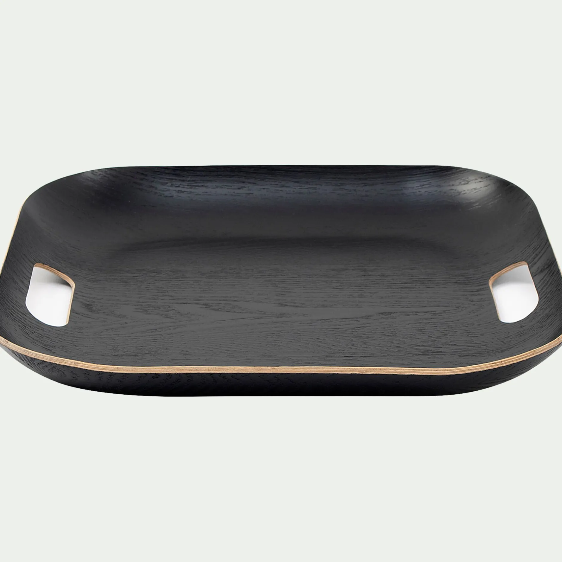 Un plateau carré en bois de saule et de couleur noire qui dévoile un style naturel et empreint d’élégance. Il vous sera utile pour servir vos boissons et plats à table ou le petit-déjeuner au lit. Ses anses intégrées vous permettent de jouir d’une meilleure prise en main. Ce plateau opte pour un design tout en rondeurs pour une note de charme. Vous pouvez la poser sur la table afin d’embellir votre déco et le détourner de sa fonction en y déposant des bocaux d’épices, sel et poivre par exemple.