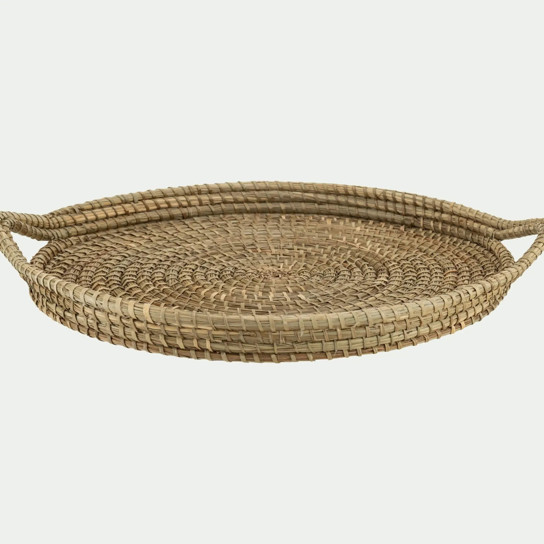 Craquez pour ce plateau rond en jonc de mer, au design naturel et raffiné. Idéal pour servir boissons et repas, il se prête aussi bien aux petits-déjeuners au lit qu’aux moments conviviaux à table. Ses anses intégrées assurent une prise en main facile, tandis que ses courbes élégantes ajoutent une touche de charme unique. Polyvalent, il peut également accueillir vos bocaux d’épices dans la cuisine, apportant une note décorative authentique et chaleureuse.