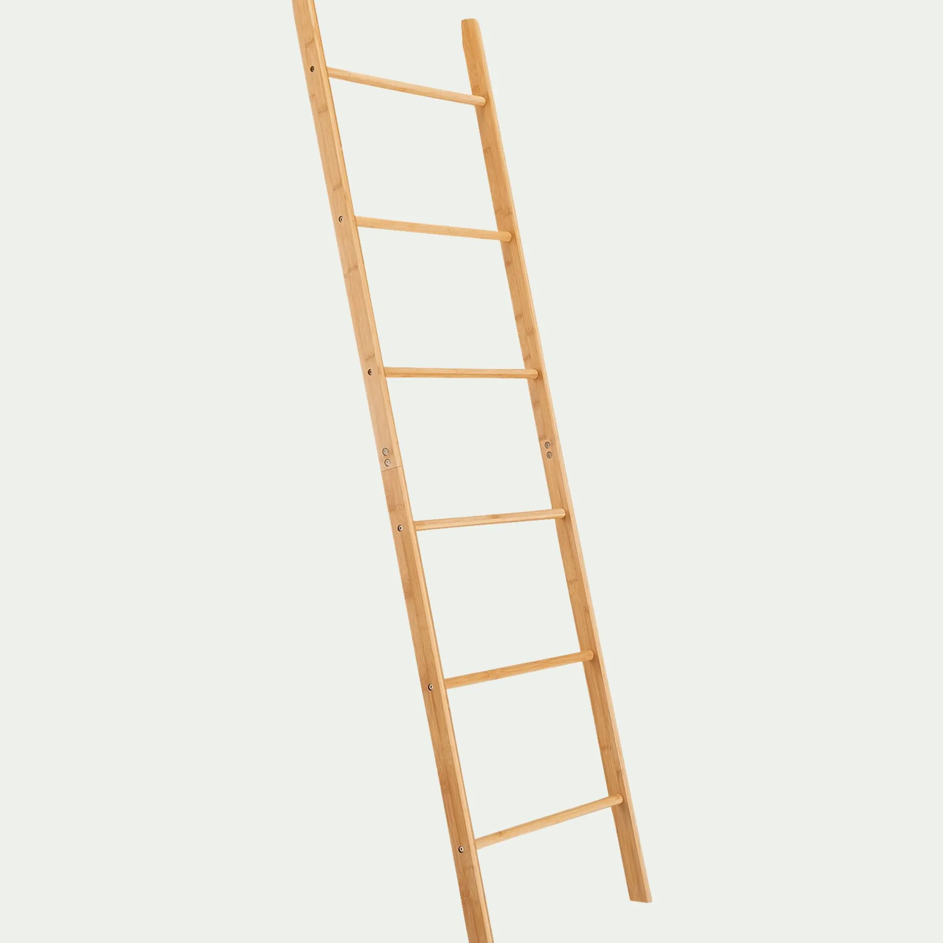 Verana est une échelle de 170 cm de haut et 50 cm de large. Confectionnée en bambou issu de forêts gérées durablement, elle bénéficie de la certification FSC. Cette échelle en bambou fait office de porte-serviette dans la salle de bain. Posée contre le mur, cette échelle en bois peut accueillir jusqu’à 5 serviettes sur ses barreaux. Pratique et esthétique, ce porte-serviette en bois apporte une touche naturelle et bohème à la salle de bain.