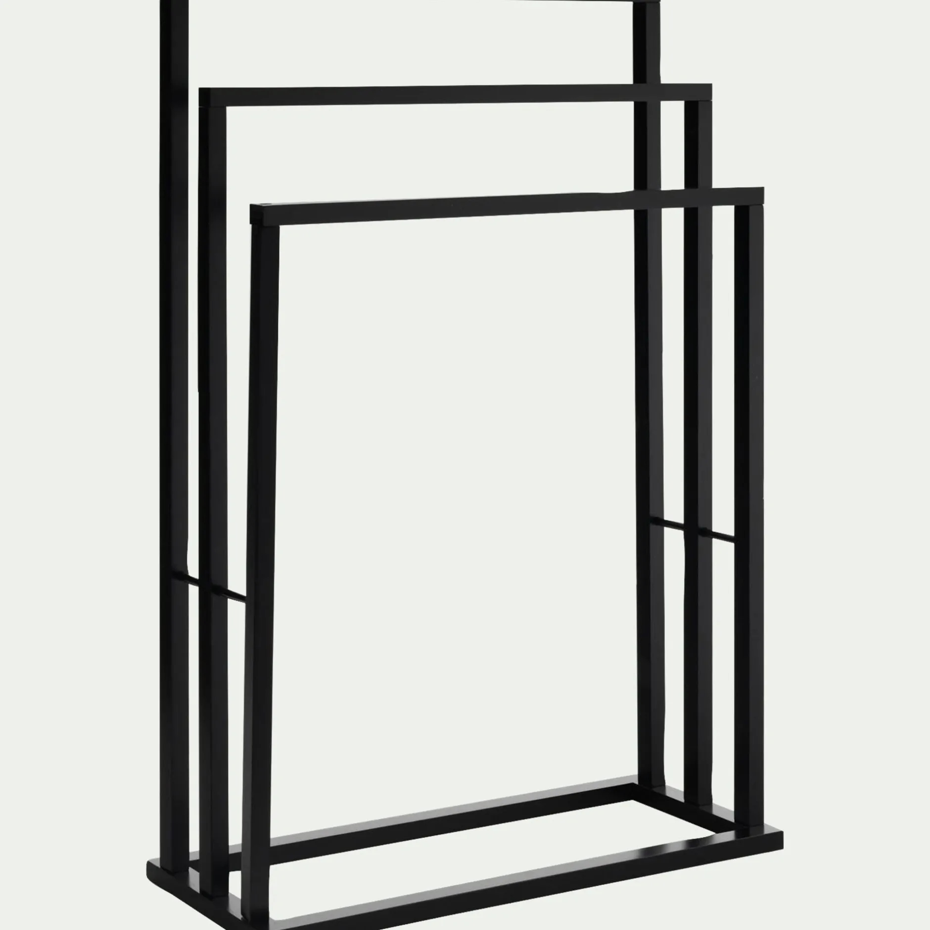 Le porte-serviette Elline vous permet d’avoir une salle de bain toujours organisée. En bambou noir, ce porte-serviette triple vous permet de disposer trois serviettes en même temps afin de les faire sécher. Sur pieds, il est idéal si vous souhaitez pouvoir le bouger à votre guise dans votre pièce. Sa hauteur de 85 cm est adaptée aux grandes serviettes de bain pour un séchage optimal. Vous pourrez ainsi étendre vos serviettes de façon élégante en donnant une touche chic à votre salle de bain.