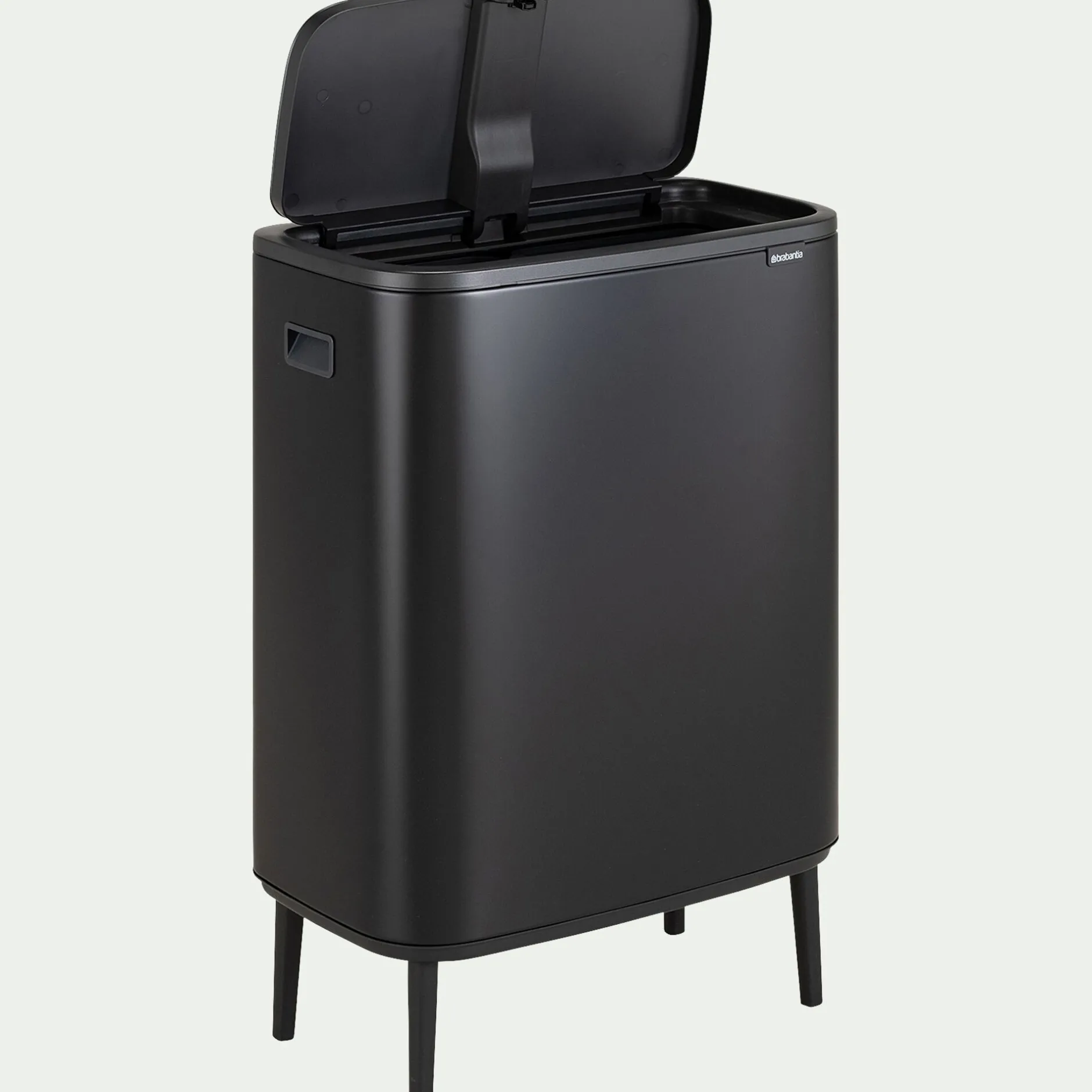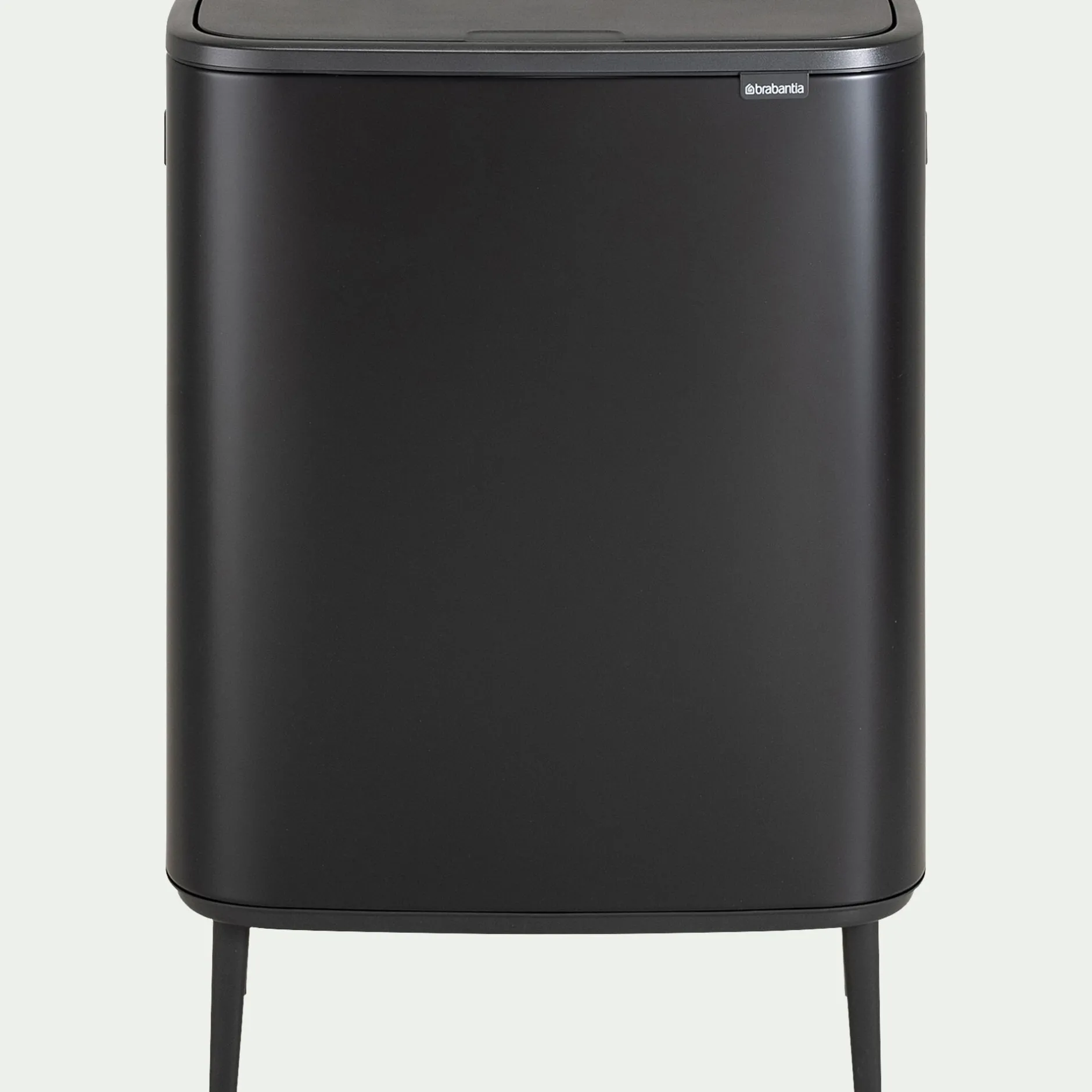 Cette poubelle XXL Brabantia Bo Touch 2×30 litres affiche un superbe design et possède tout ce dont vous avez besoin pour trier facilement vos déchets à la maison. Grâce à la présence de deux seaux amovibles d’une capacité de 30 litres chacun, vous avez la possibilité d’y jeter vos déchets selon leur nature. Cette grande poubelle noire en acier est dotée du système Soft Touch : il vous suffit d’effleurer le couvercle pour l’ouvrir. Un objet qui allie ici design et côté pratique afin de rendre votre quotidien plus agréable.