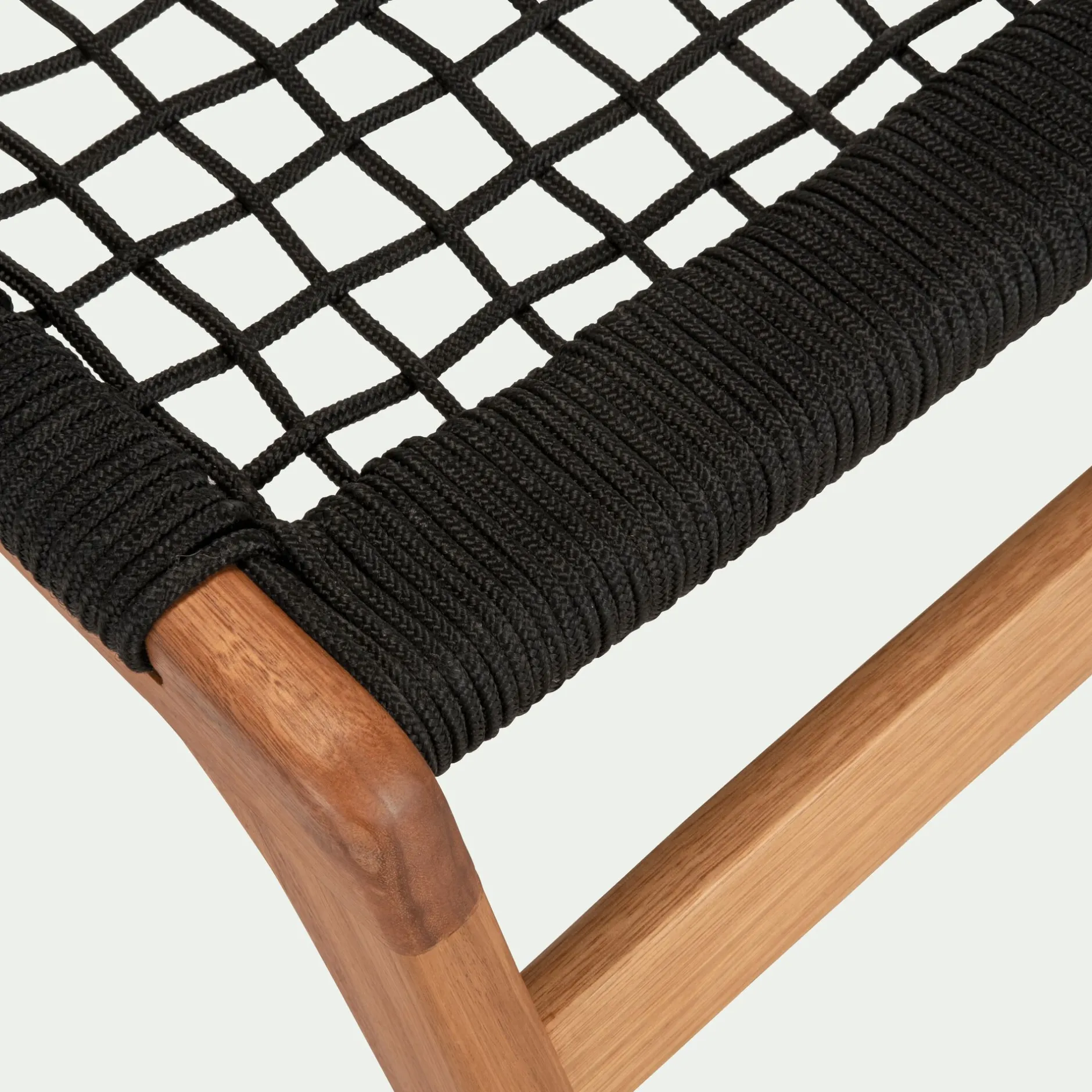 Eucalyptus FSC finition huilée et corde synthétique polyester.