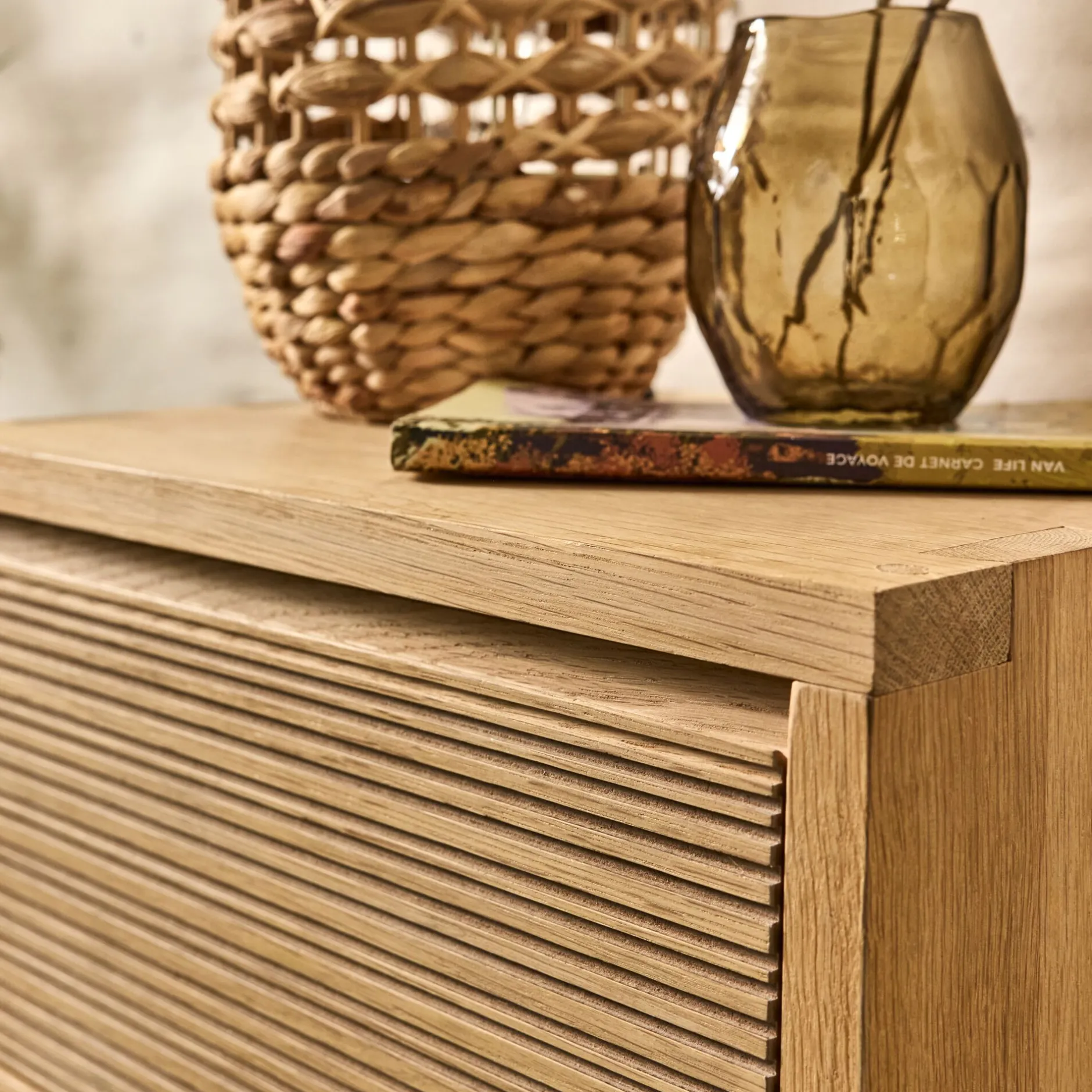 L’élégance du chêne certifié FSC® s’exprime pleinement à travers ce module, équipé de 2 tiroirs striés, apporte une touche graphique et sophistiquée tout en offrant un espace de rangement discret et pratique. Conçue pour s’adapter à vos besoins, cette gamme de mobilier de salon se distingue par ses structures modulables et personnalisables, vous permettant de composer un agencement unique grâce à un large choix d’éléments. Cette collection de meubles au style intemporel se décline en différents modèles.