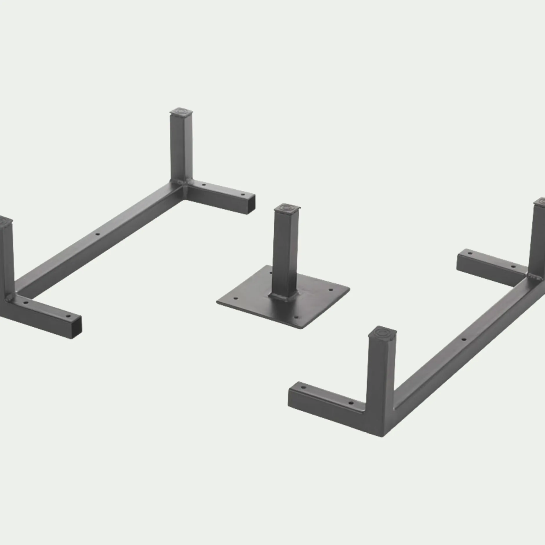 Ce lot de 3 pieds en métal se fixe sous votre composition Tassia afin de la surélever et la mettre en valeur. Cette gamme de meubles de salon se module au gré de vos besoins grâce à ses structures positionnables à la verticale ou à l’horizontale, et se personnalise avec ses portes, tiroirs et piètements.