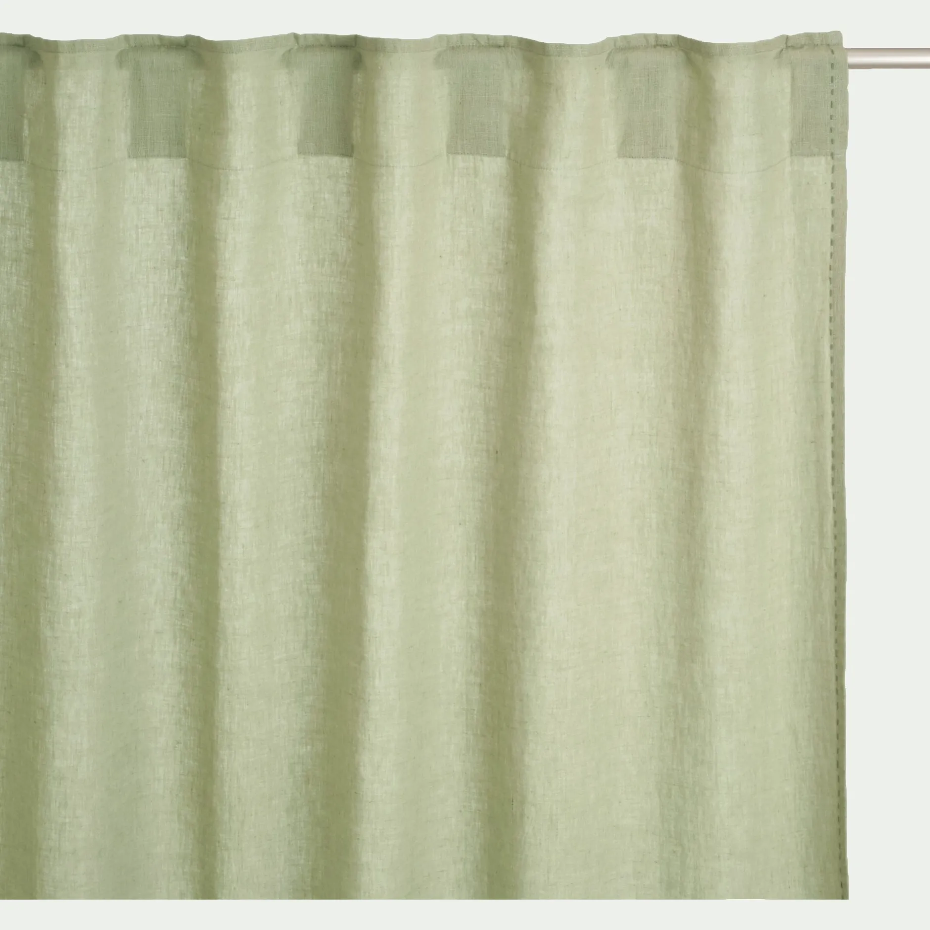 Le rideau Vinon tient son nom d’un agréable petit village au cachet provençal. Niché dans les gorges du Verdon, il se distingue par la nature opulente qui l’entoure. Ce rideau en lin lavé s’installe à vos fenêtres comme un petit bout de ce beau paysage. Tissé en fibres naturelles, ce rideau à passants cachés arbore notre coloris vert olivier, une nuance apaisante qui évoque la nature, mais aussi la douceur de vivre. Ce rideau de 140×260 cm se distingue par une finition réalisée à la main : une surpiqure point plat en double fil qui vient souligner son drapé et apporter une touche d’élégance.