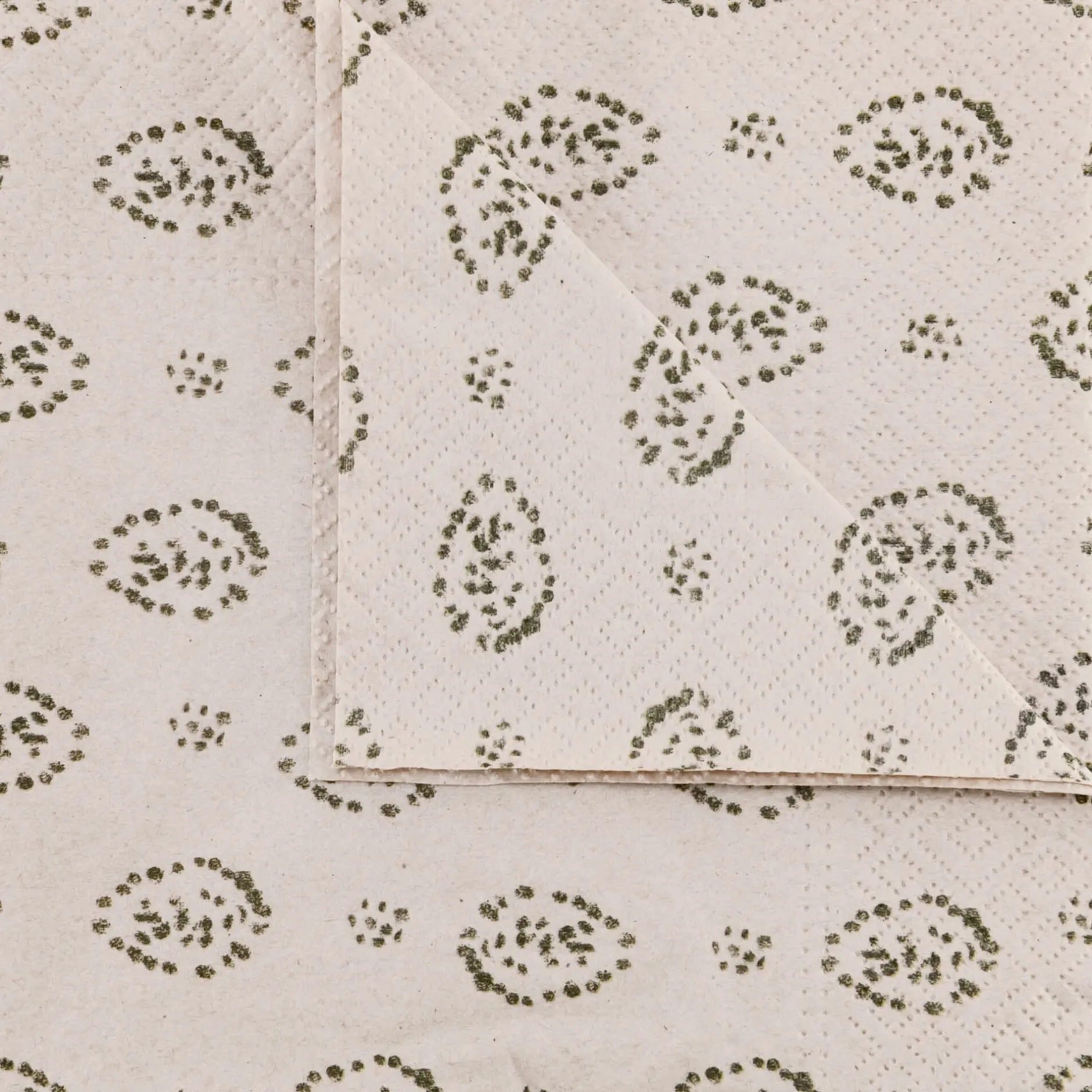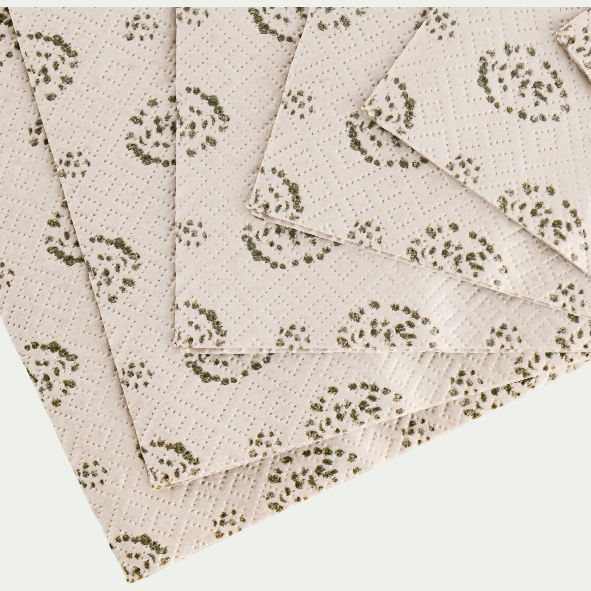 Une teinte neutre de beige, parsemé d’un motif amande tendre vert olivier pour ces serviettes en papier qui apportent une belle touche déco empreinte de délicatesse à vos repas. On dresse une belle table improvisée qui ne fait pas l’impasse sur le style grâce à ces serviettes de table comme touche finale.