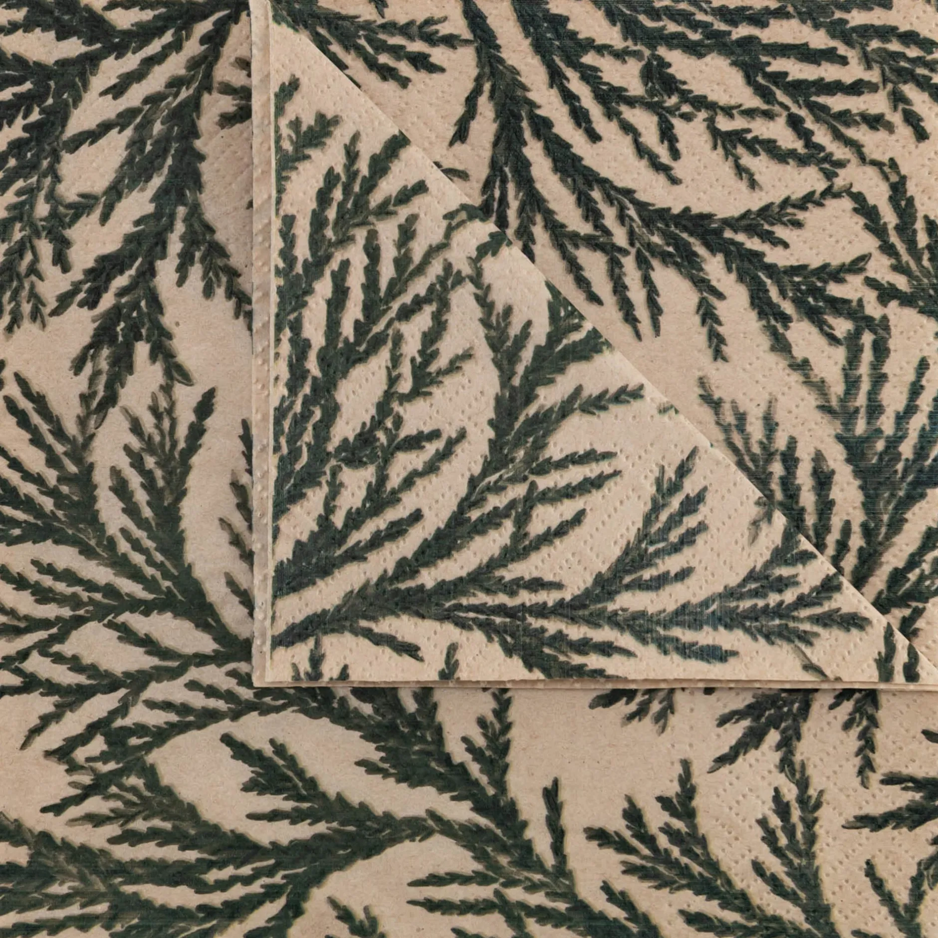Ces serviettes en papier, d’un beige doux parsemé de motifs de cyprès, ajoutent une touche décorative raffinée à vos repas. Le coloris vert des cyprès crée une ambiance chaleureuse et naturelle, parfaite pour une table élégante et soignée. Un choix idéal pour sublimer vos repas avec une note discrète mais stylée.