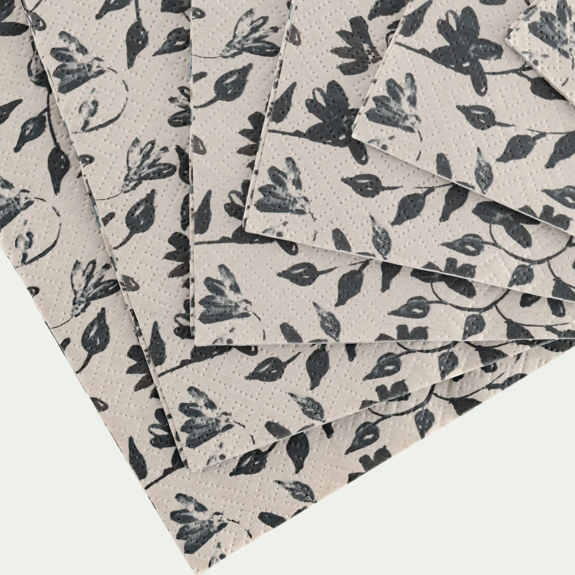 D’un beige apaisant, ces serviettes en papier arborent un motif floral bleu. Elles apportent une élégante touche naturelle à votre décoration de table, parfaites pour des repas alliant simplicité et raffinement. Idéales pour créer une ambiance chaleureuse sans sacrifier le style, elles accompagnent avec charme vos assiettes et vos couverts.