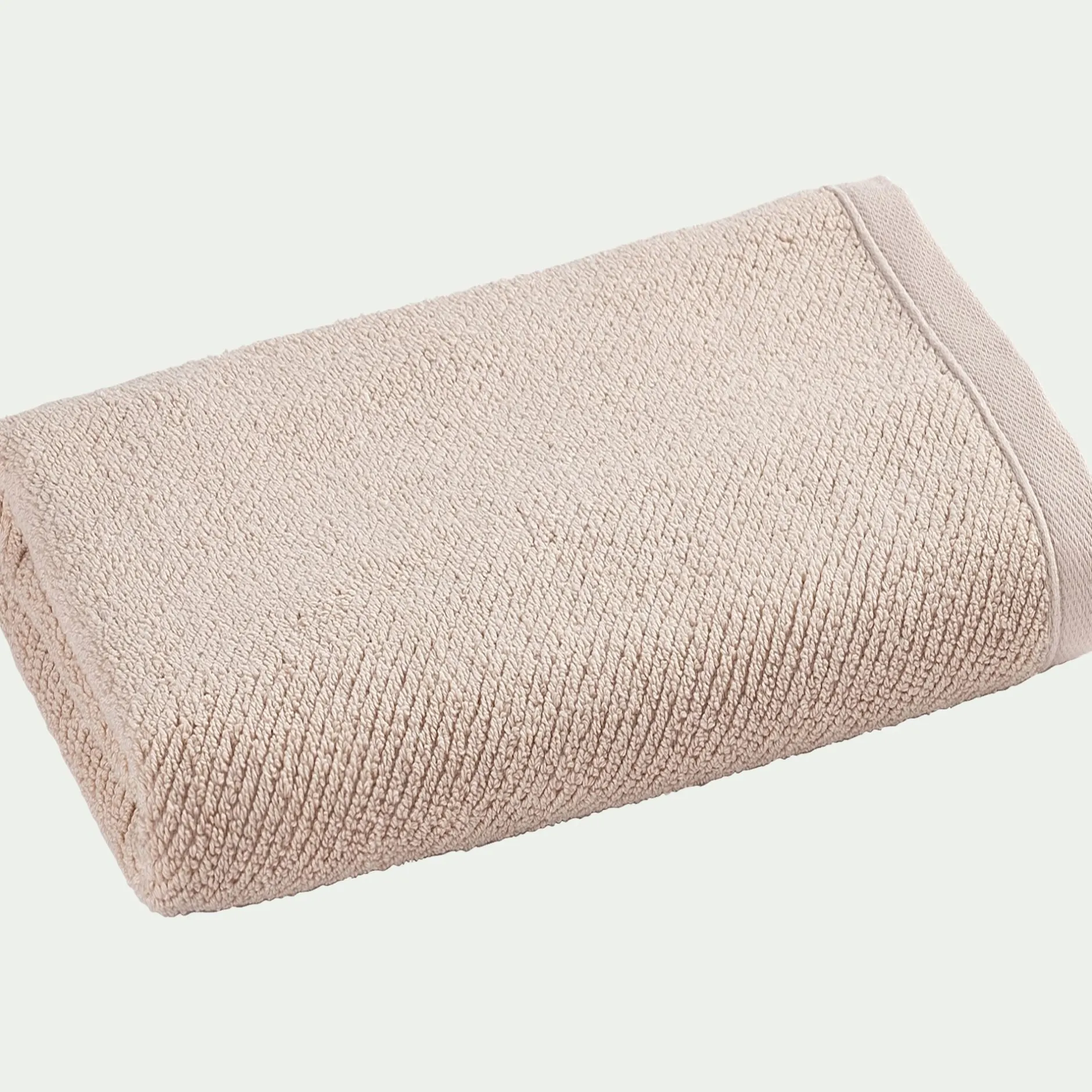 Cette serviette de toilette en coton biologique présente un tissu, à la fois doux, souple, absorbant et résistant. Allié à un grammage de 550 gr/m2, cette petite serviette, fabriquée au Portugal, est un linge toilette de qualité. Elle trouve sa place accrochée délicatement à une patère ou à un porte-serviette et vous permettra de vous sécher la peau en douceur à tout moment de la journée. Ici en beige alpilles, une couleur intemporelle et sobre, elle s’accordera avec les différents éléments de votre salle de bain. Laissez-vous séduire par les gants de toilette, les serviettes de bain et les draps de douche afin de créer un bel assortiment. Cette collection existe dans d’autres couleurs rappelant les décors de la Méditerranée.