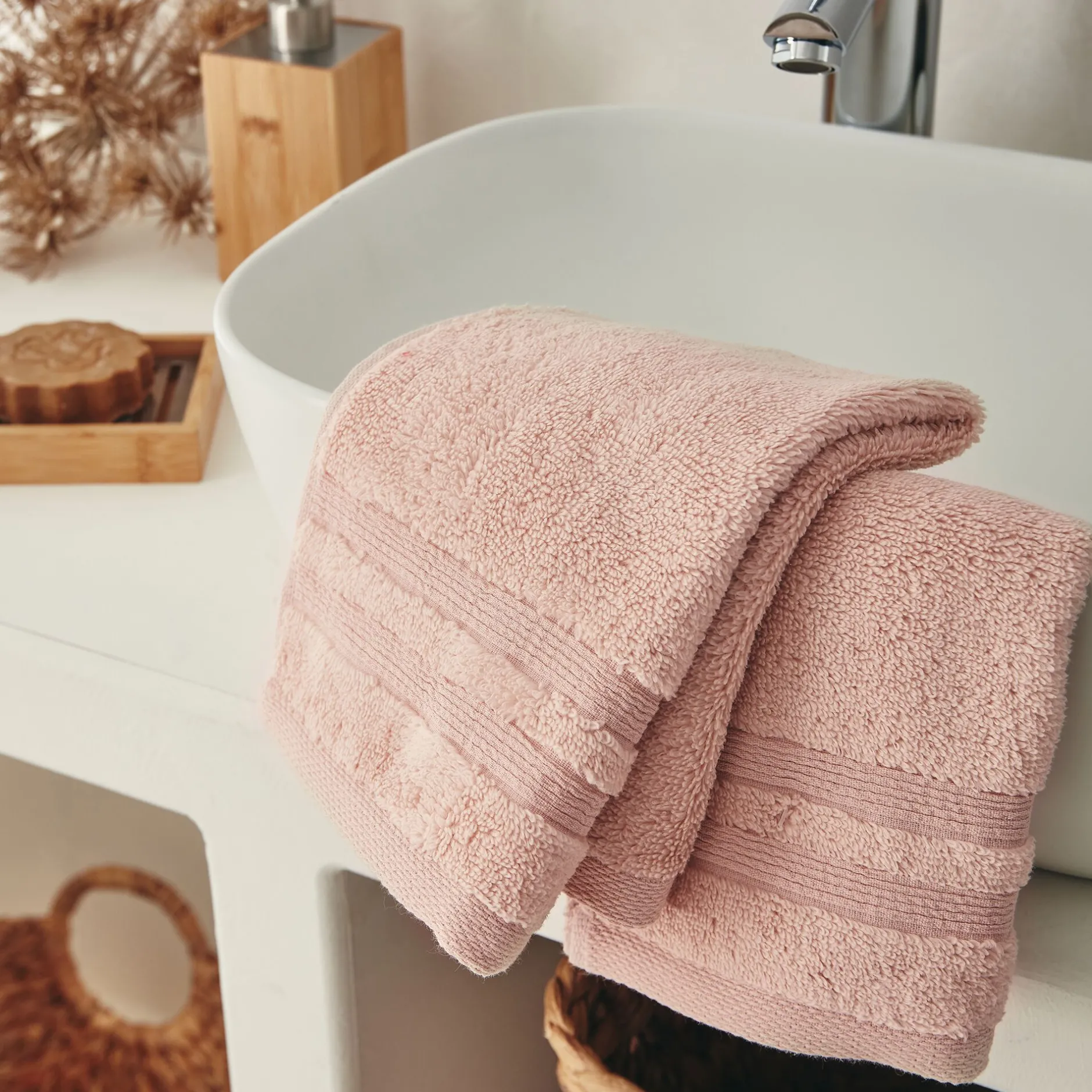 Serviette Invité*alinea Lot de 2 serviettes invité bouclette en coton – grège 30x50cm Rose