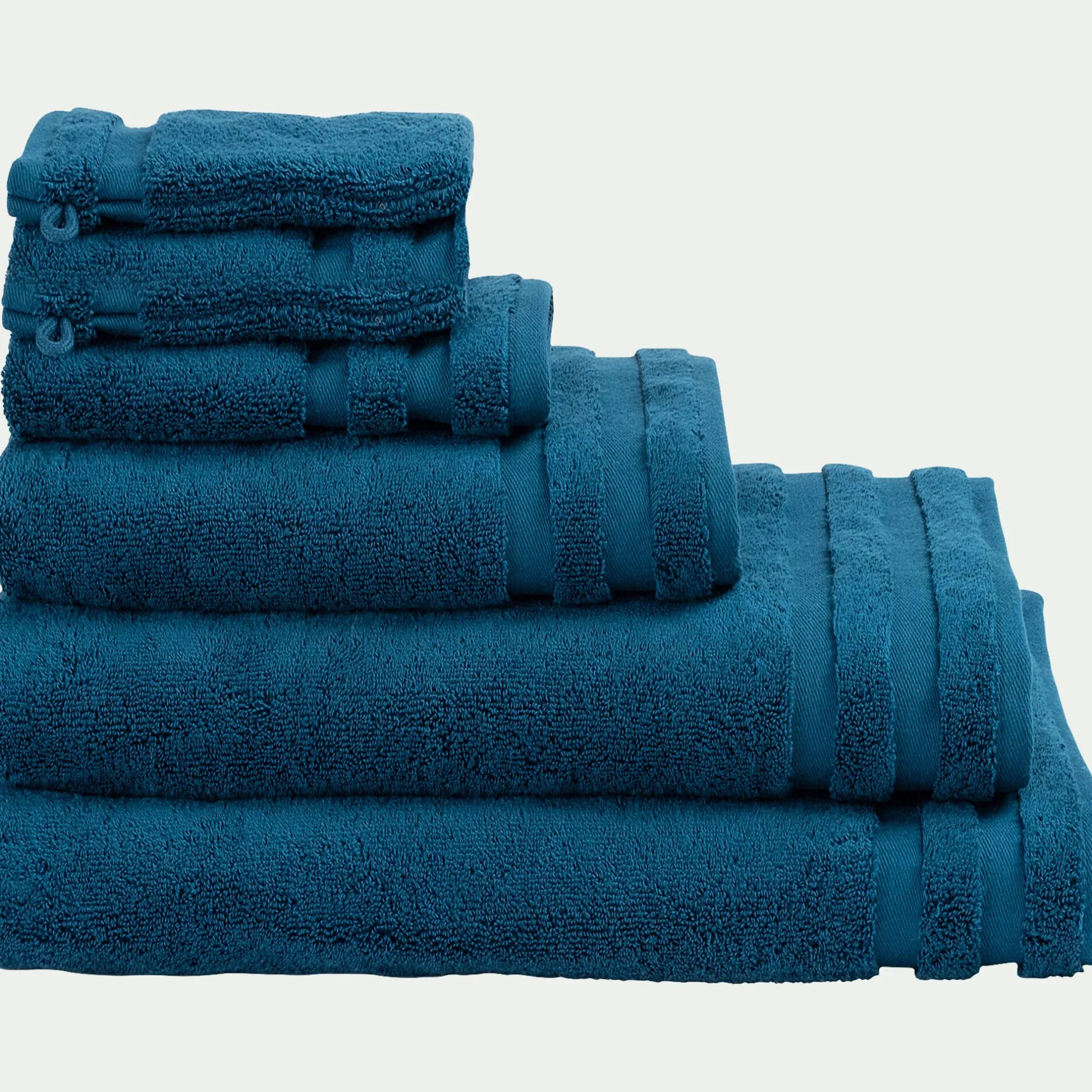 Découvrez la gamme de linge de toilette Rania. Elle vous accompagne au quotidien. Ici, nous vous présentons un lot de 2 serviettes invité dans un coloris bleu figuerolles. C’est un souffle d’air marin qui s’invite dans votre salle de bains. Faisant preuve d’une grande résistance à l’usage, ces serviettes de douche 100% coton fabriqués au Portugal sont une source de tendresse et délicatesse pour votre peau lorsque vous vous lavez. Dans la même collection, retrouvez aussi des draps de bain, serviettes de bain et gants de toilette, afin de créer un bel ensemble. Cette gamme existe dans un autre coloris.