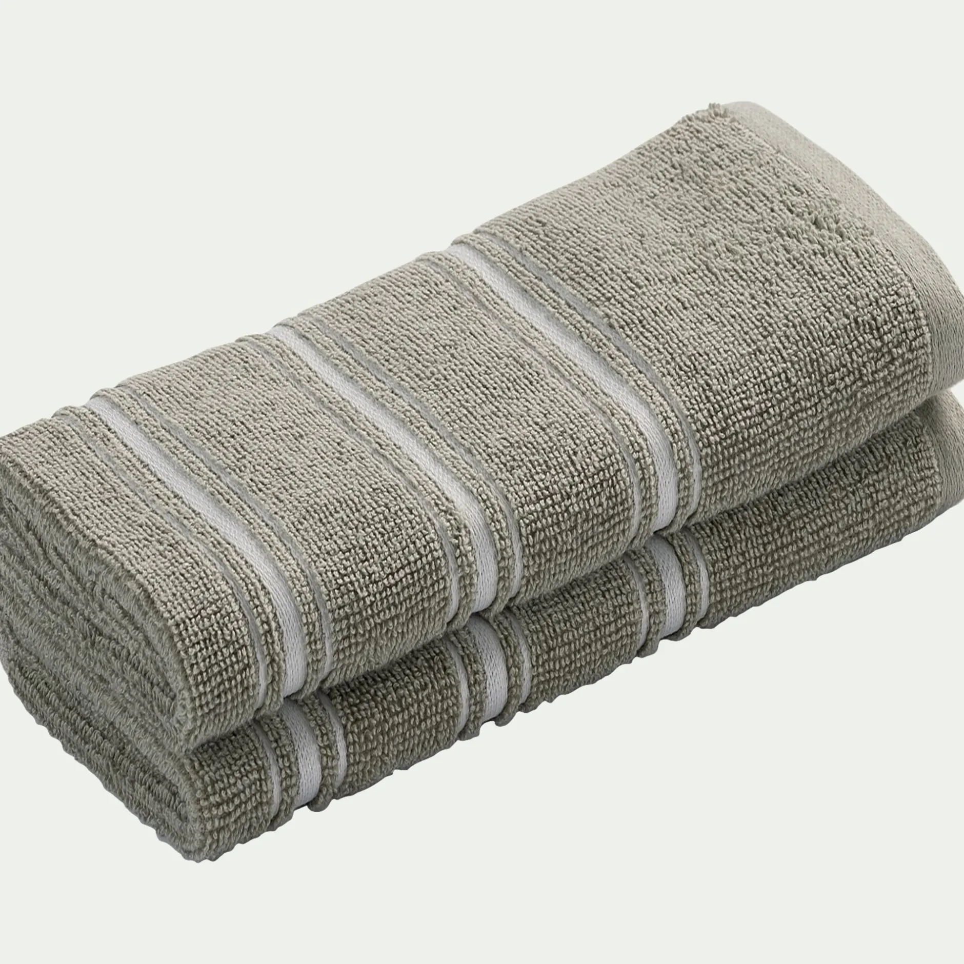 Découvrez la gamme de linge de toilette Romy 100% en coton fabriqué au Portugal. Ici, nous vous présentons un lot de 2 serviettes invité et comme tous les éléments de la collection, il vous accompagne avec douceur au quotidien. Grâce à leur grammage, ces serviettes de toilette sont très absorbantes et vous sèchent efficacement après la douche ou le bain. Elles sauront aisément trouver leur place dans votre salle de bain. Découvrez le reste de la gamme qui se compose de drap de douche, gants de toilette et tapis de bain pour créer un bel ensemble.