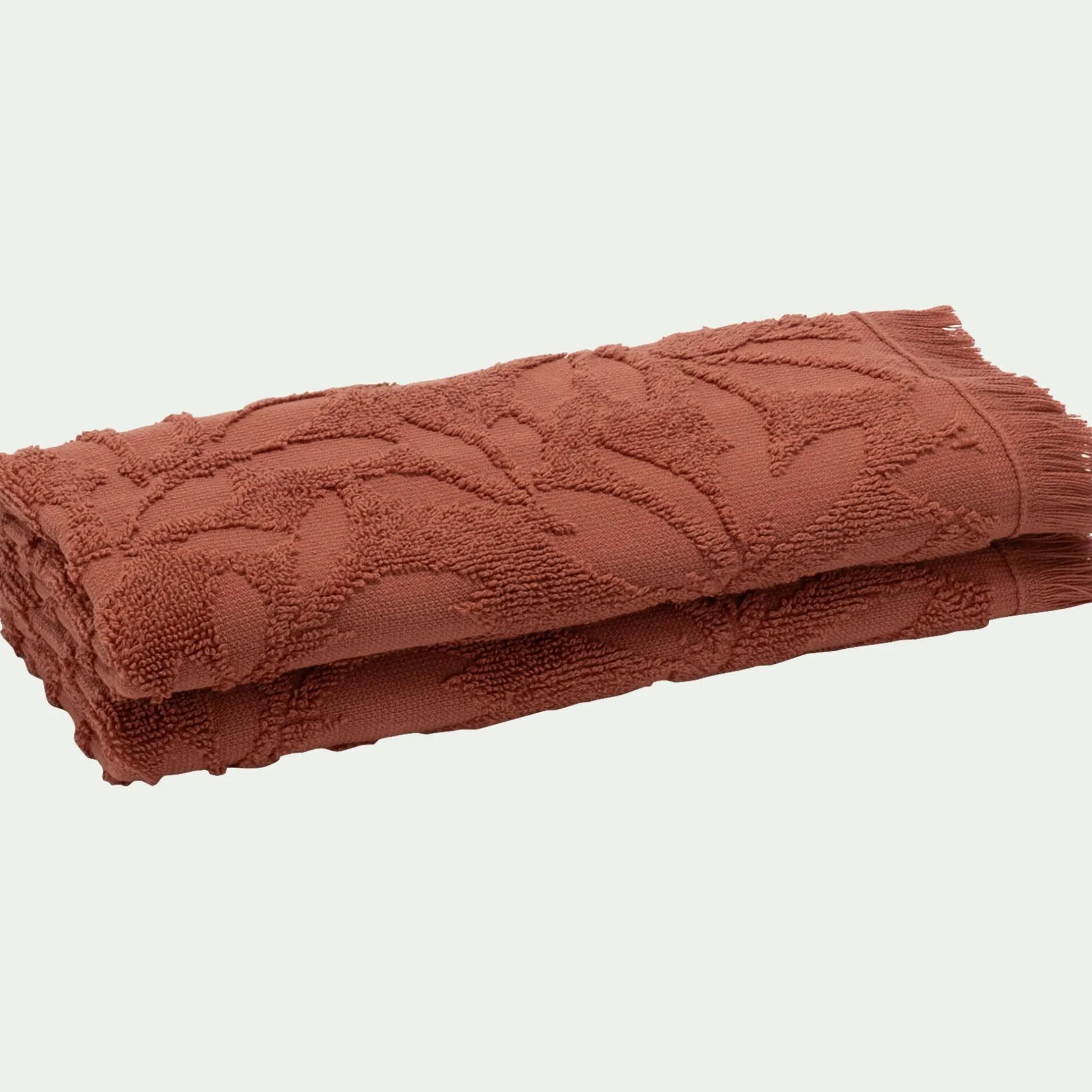 Le lot de 2 serviettes invités Alloro en vert mousse (30×50 cm) inspire sérénité et élégance. Leur coton épais de 500 g/m² assure confort et efficacité, tandis que leur motif floral en jacquard et leurs franges décoratives soulignent leur raffinement. Fabriquées au Portugal et certifiées Oeko-Tex, ces serviettes permettent de recevoir avec élégance.