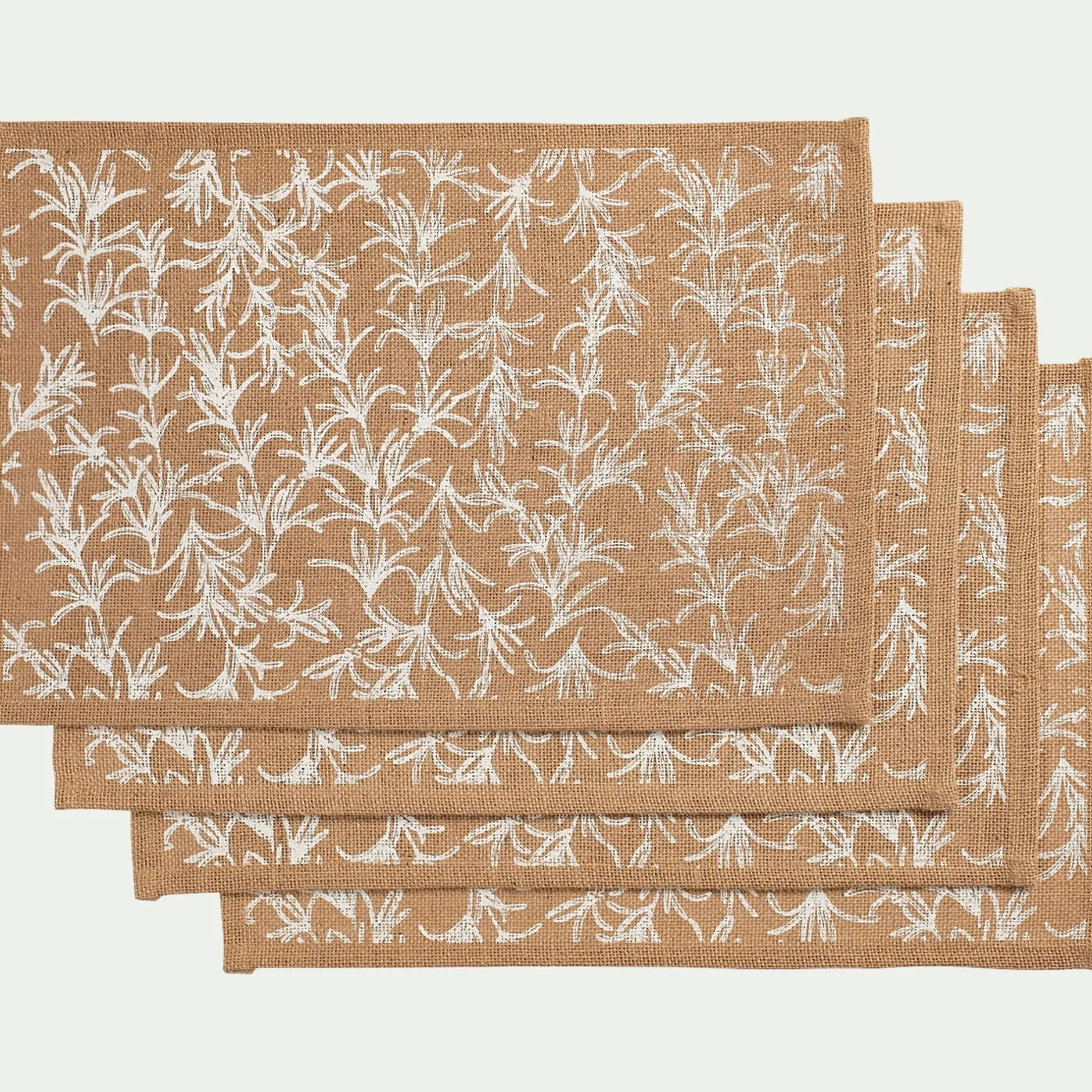 Tissés en jute, les sets de table Uzes apportent une touche naturelle et chaleureuse au dressage de la table. De 30×45 cm, ils accueillent assiettes, verres et couverts pour protéger la table, structurer l’espace et sublimer ce moment gourmand. Ces sets de table en jute arborent un motif floral inspiré de la garrigue méditerranéenne. Des brins de romarin virevoltent sur la toile et offrent un motif gracieux et délicat.
