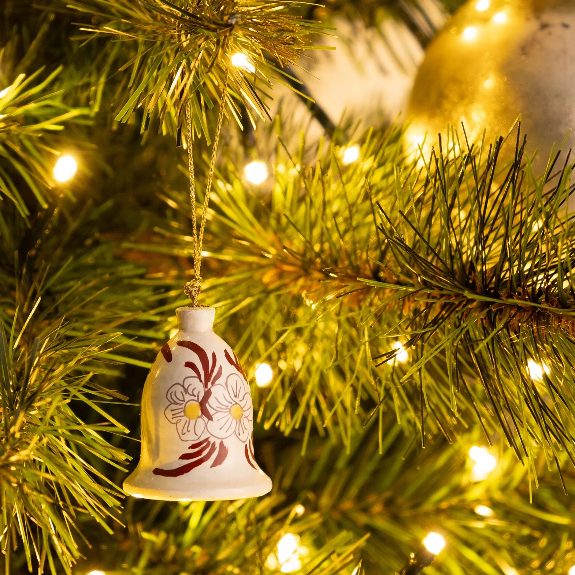 Suspension De Noël*alinea Suspension de Noël cloche peinte à la main – Beige