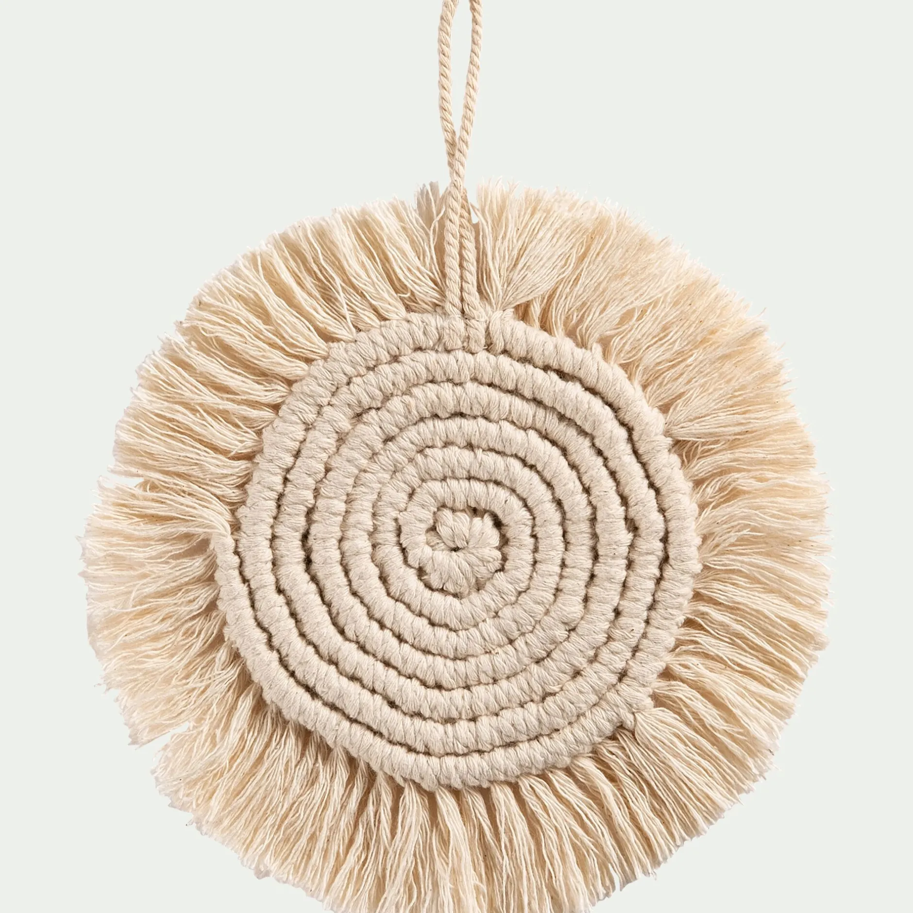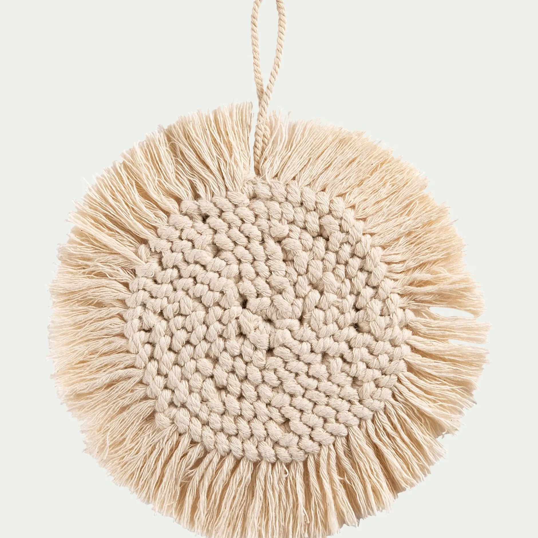 Cette année, optez pour un style naturel voire ethnique pour décorer le sapin de Noël. Cette suspension blanche est entièrement tressée en coton. Ronde avec une courte frange, cette suspension de Noël diffuse d’énergie du soleil et la douceur du coton. Un mélange harmonieux qui se marie à merveille avec des décorations naturelles, en bois ou en rotin.