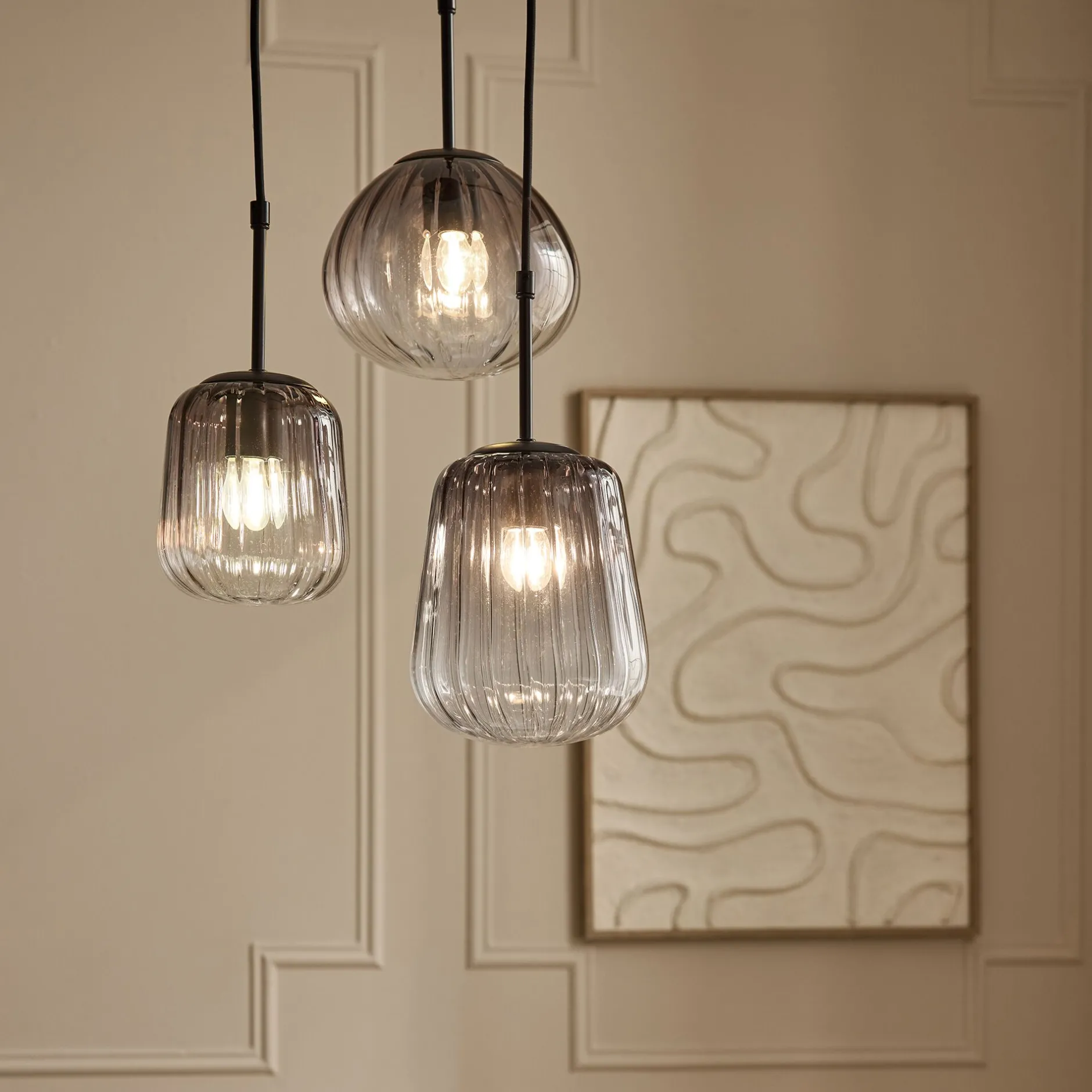La suspension électrifiée Oromia, avec ses trois globes en verre de formes variées, évoque une danse harmonieuse de lumière et de transparence. Chaque globe arbore un dégradé de gris, passant du sombre au clair et créant un jeu d’ombre et de lumière. Suspendus ensemble, ils apportent une touche poétique et moderne à votre intérieur, illuminant généreusement l’espace. Cette suspension en verre est parfaite pour ceux qui recherchent une ambiance à la fois contemporaine et raffinée.