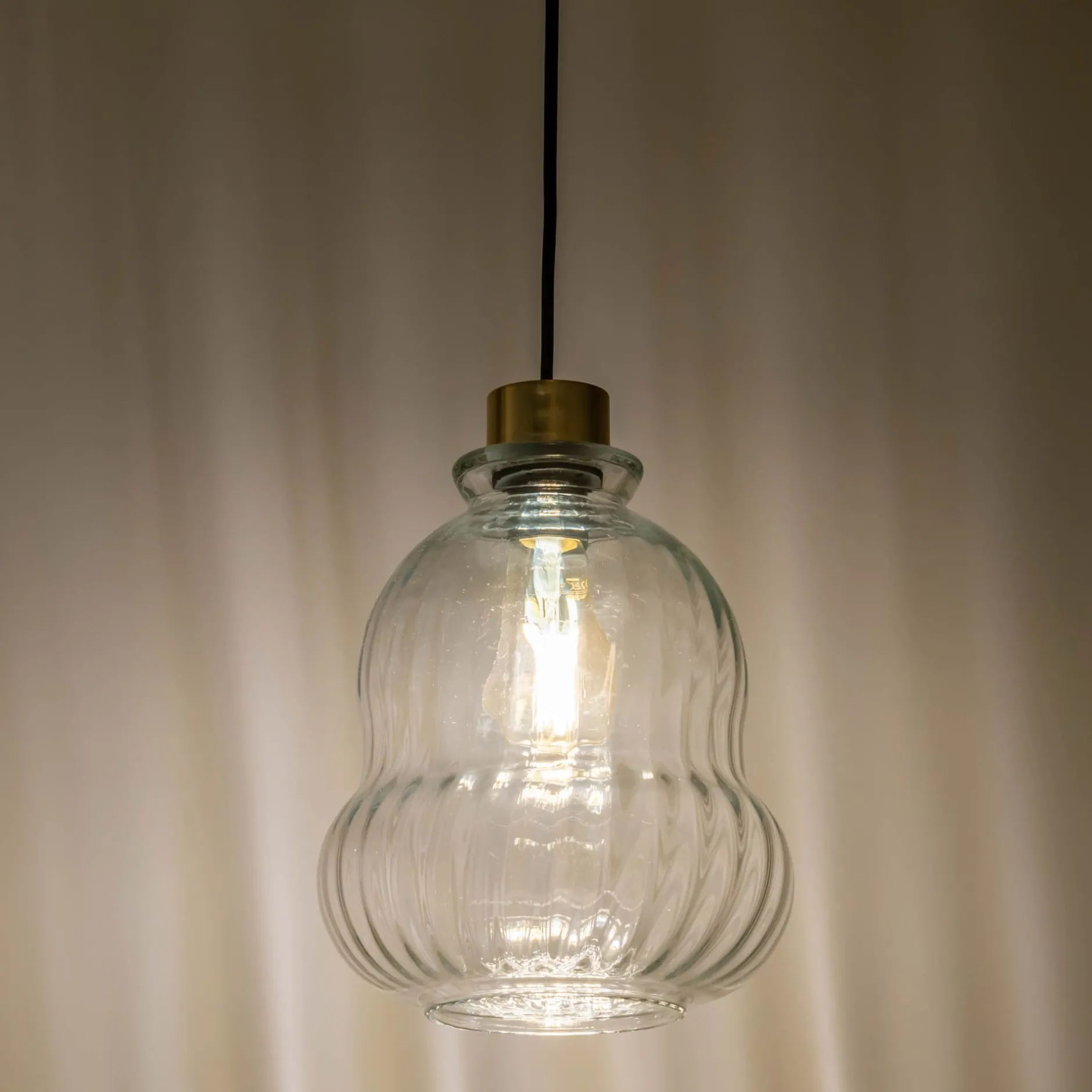 Cette suspension en verre transparent se distingue par sa forme organique aux courbes douces, qui évoquent la fluidité et l’élégance. L’abat-jour laisse généreusement filtrer la lumière, créant un éclairage clair et homogène, idéal pour un espace nécessitant un bon confort visuel, tel qu’un bureau ou une bibliothèque. Les finitions en laiton ajoutent une subtile touche dorée, rehaussant l’ensemble d’un éclat raffiné. Cette suspension électrifiée est à la fois moderne et intemporelle.