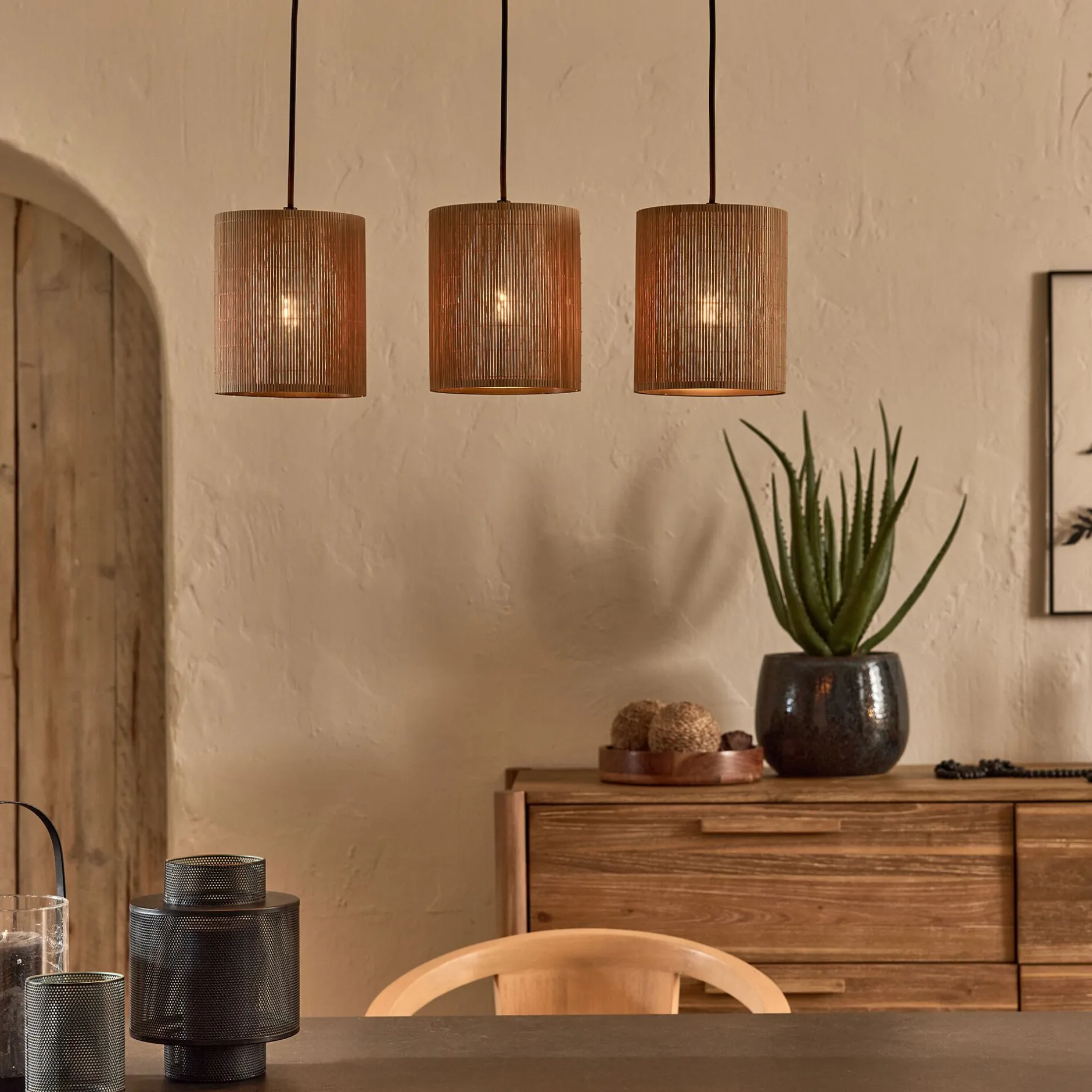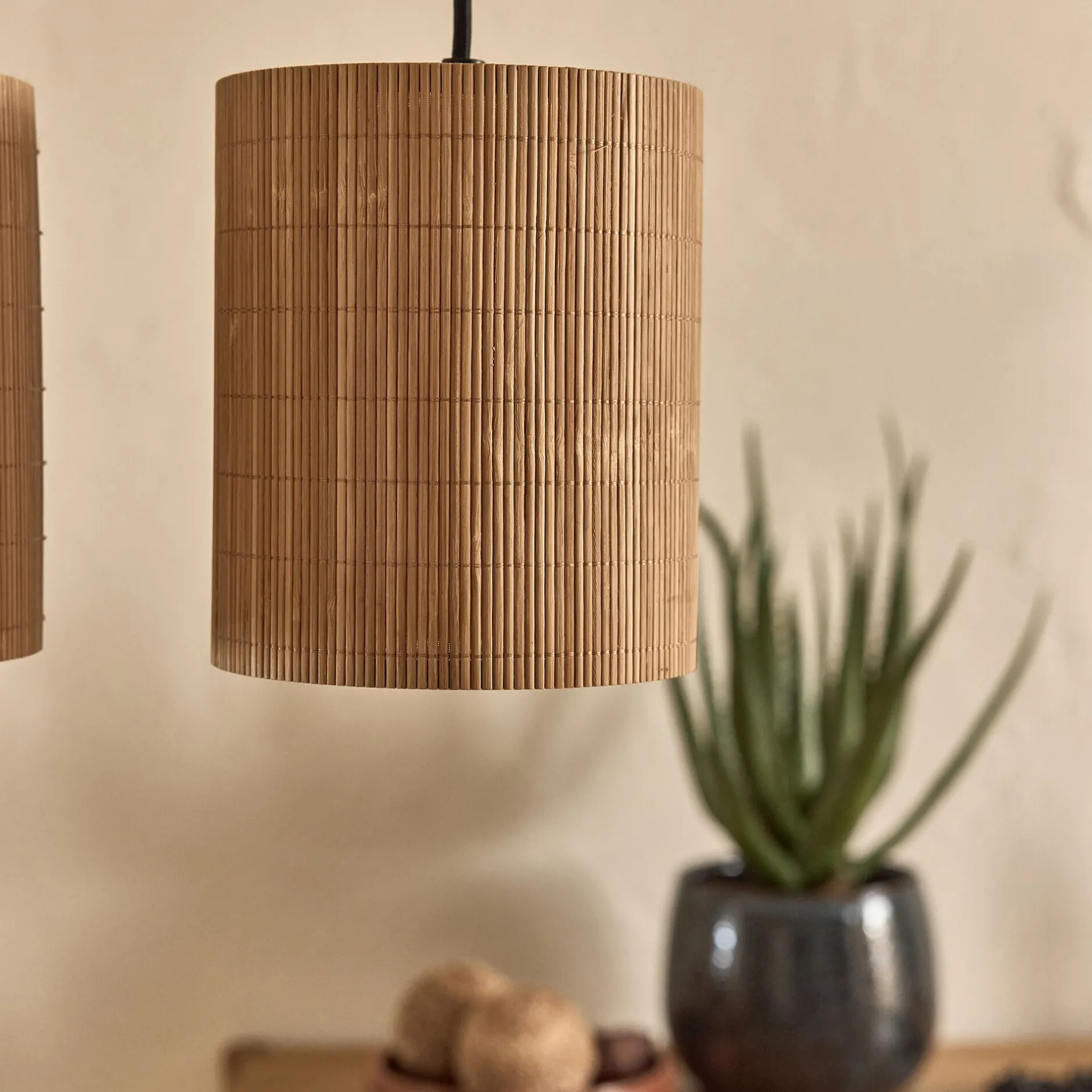 Piana est une suspension triple, c’est-à-dire une suspension électrifiée à 3 abat-jours. Réglables en hauteur, les abat-jours en bambou peuvent être alignés ou bien déstructurés selon le rendu souhaité. Cette touche naturelle et authentique s’associe à un système électrique noir pour un côté plus contemporain. Cette suspension en bambou est idéale au-dessus d’un ilot de cuisine ou d’une table de repas. Elle habille les hauteurs sous plafond et décore avec élégance.