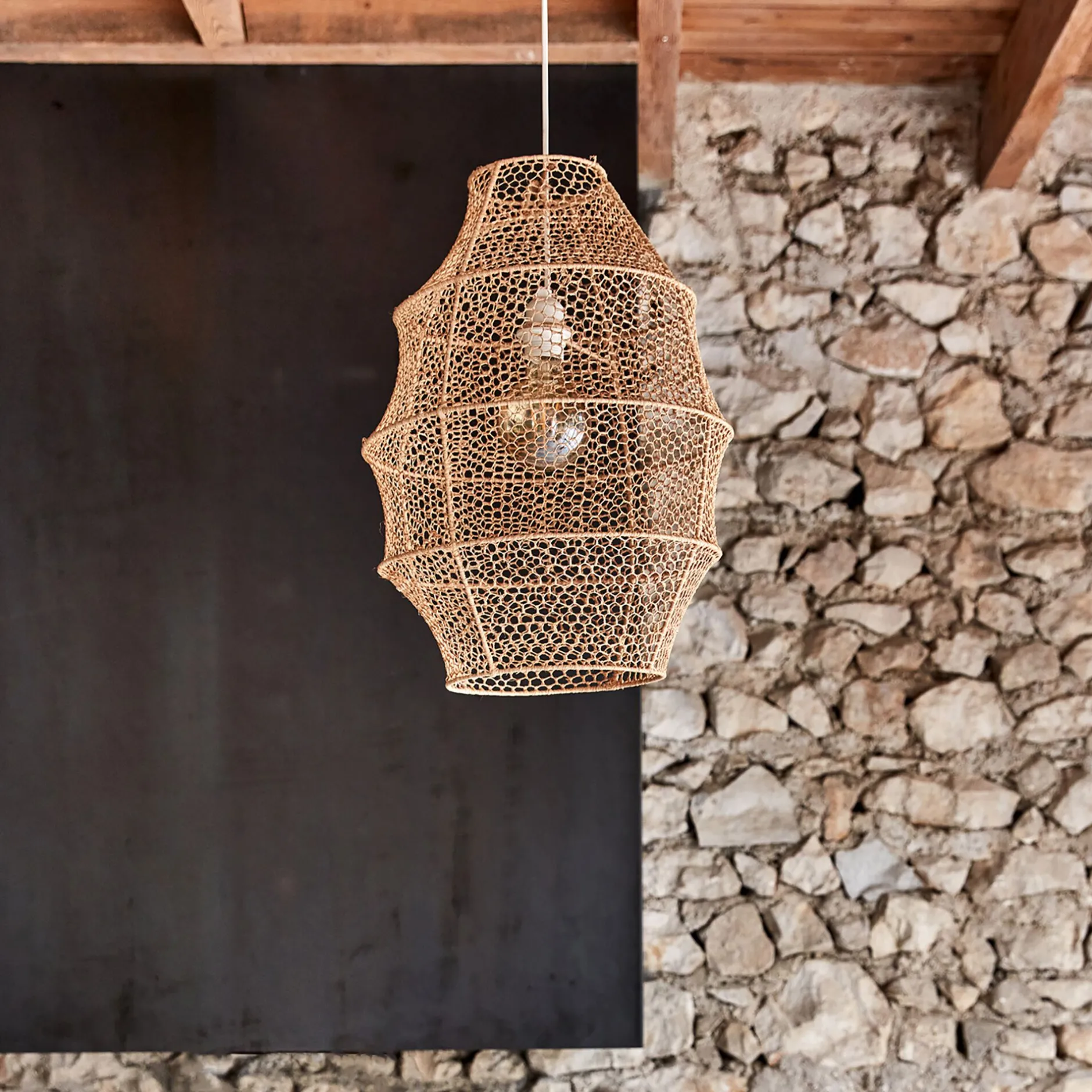 La suspension Marrakech vous transporte dans les rues fourmillantes des souks de la Médina. Inspiré de la culture marocaine, ce luminaire en raphia arbore une silhouette atypique et légère qui teinte votre intérieur d’un esprit de vacances. La chaleur et la convivialité du bassin méditerranéen se diffuse doucement dans la pièce grâce à cette suspension non électrifiée. Une très belle pièce à accrocher dans le séjour ou dans la chambre comme source principale de lumière. En effet, ce tressage du raphia laisse généreusement passer l’éclairage pour une ambiance agréable et confortable.
