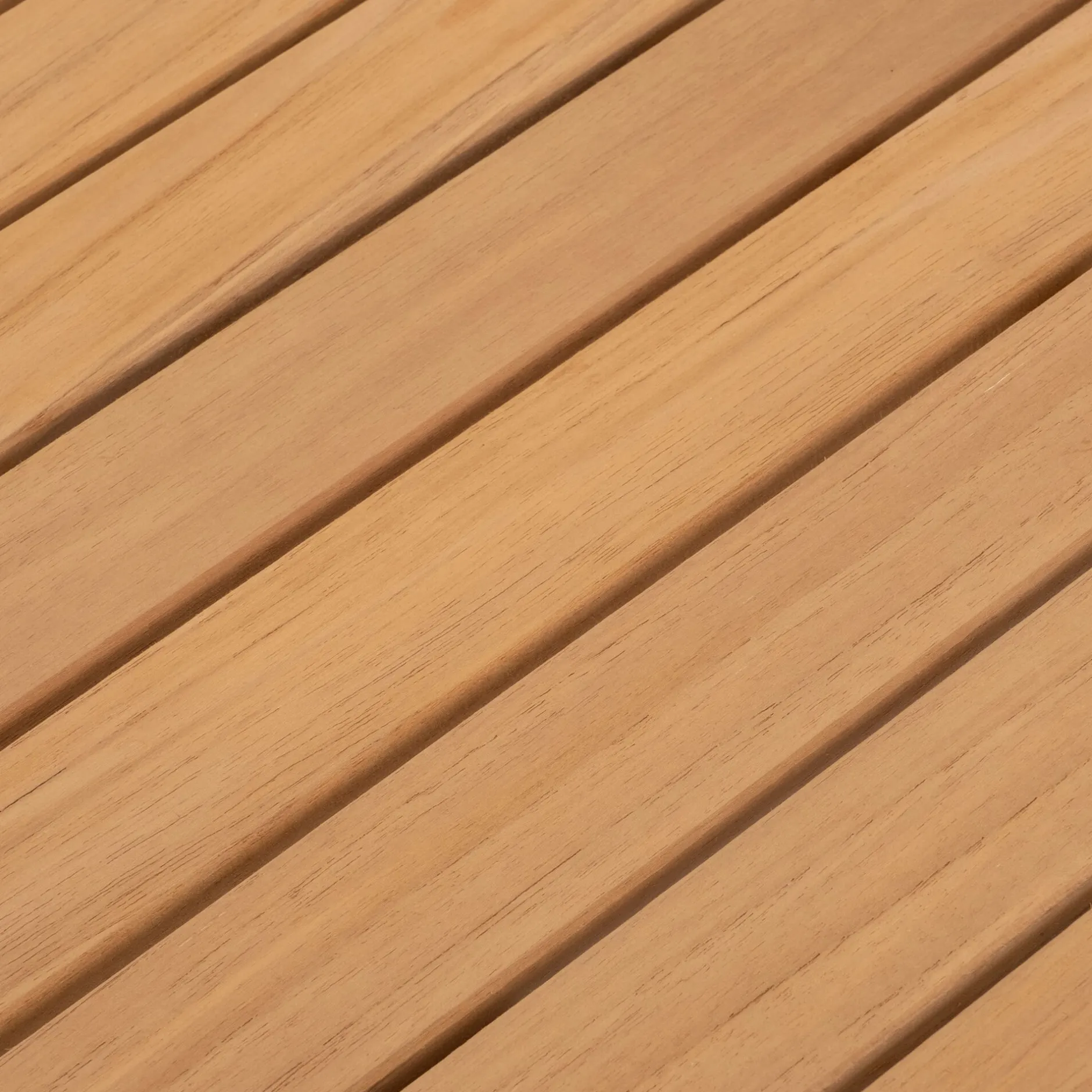 Avec son design épuré et ses lignes graphiques, cette table basse d’extérieur PORTALS séduit par son alliance harmonieuse de matériaux nobles et durables. Son plateau à lattes en teck certifié FSC® apporte chaleur et authenticité à votre salon de jardin, tout en créant un joli jeu de reliefs visuels. Le bois de teck est réputé pour sa résistance naturelle aux intempéries, ce qui en fait un choix idéal pour un usage en extérieur. Le bois utilisé pour cette table provient de forêts gérées de manière responsable et respectueuse de l’environnement. Son piètement en aluminium beige, léger et robuste, renforce l’élégance minimaliste de l’ensemble.