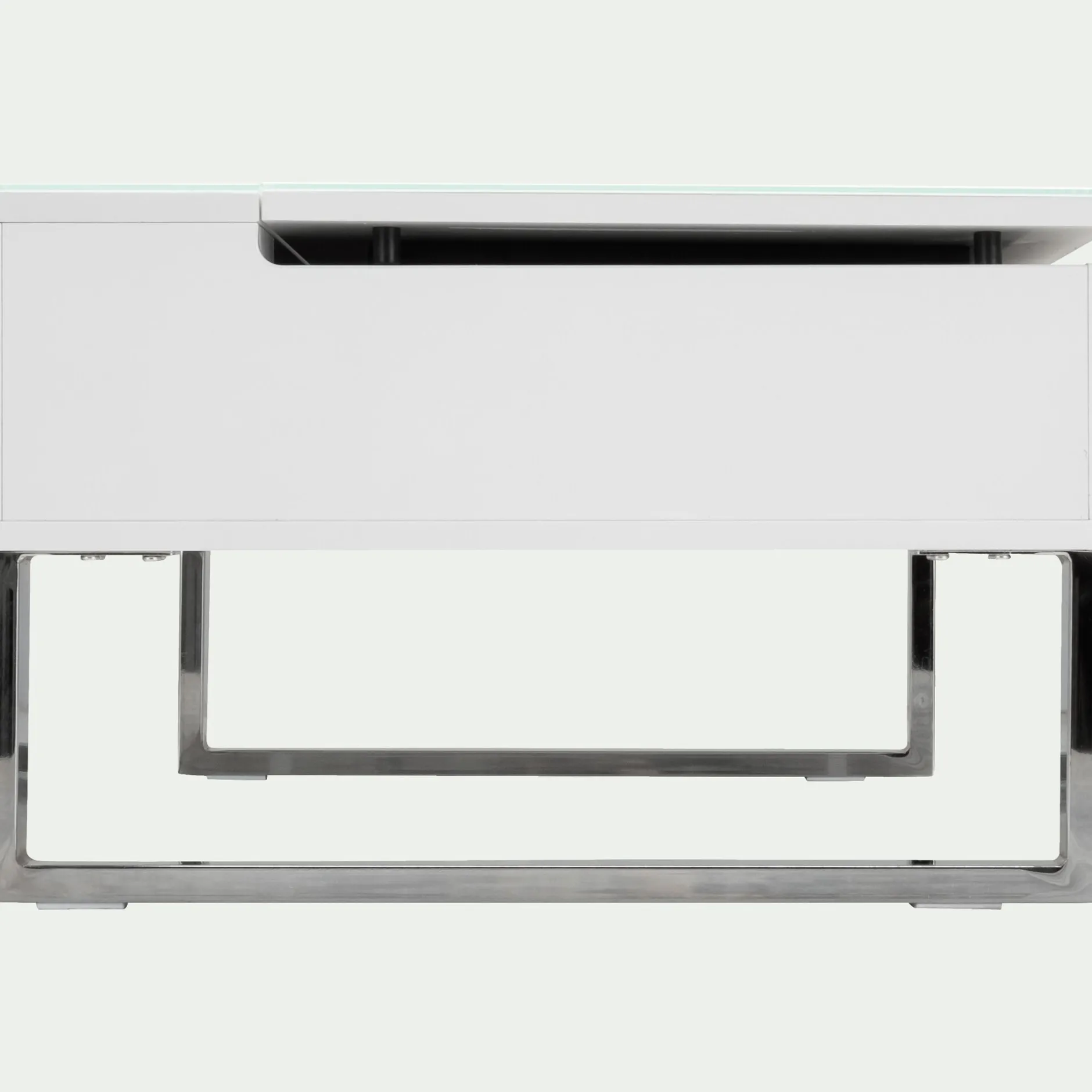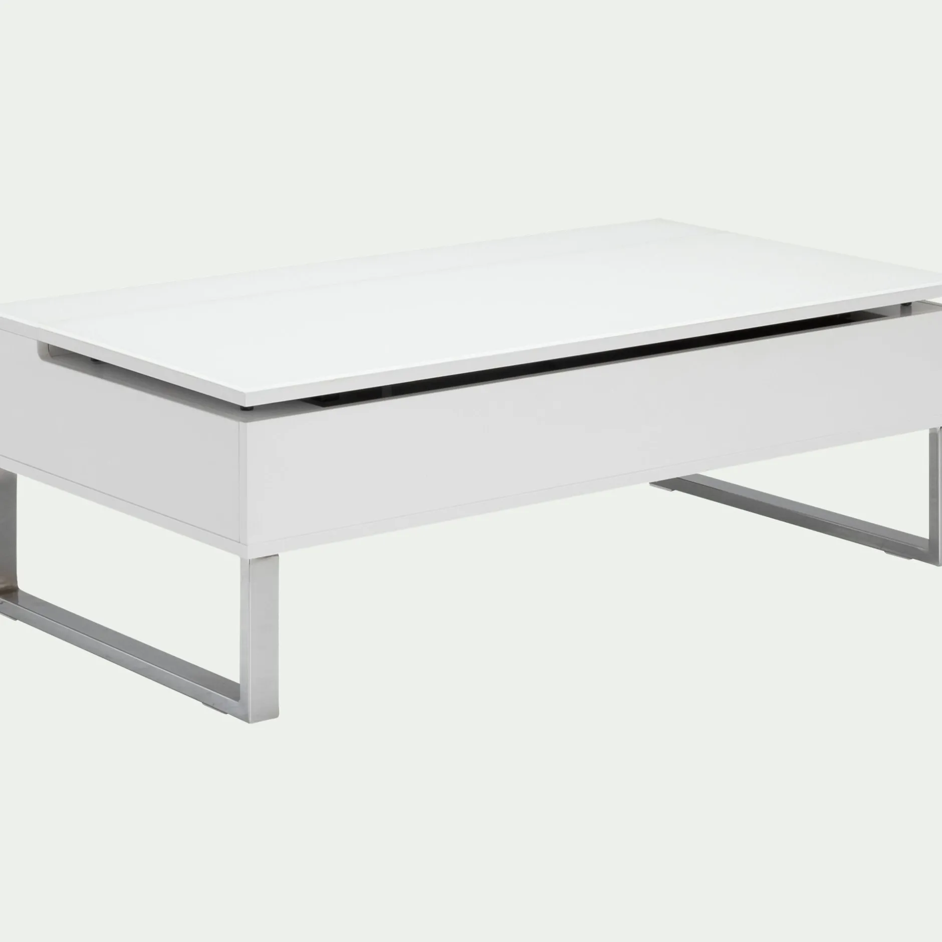 Cette table basse blanche avec tablette relevable vous offre un vaste espace de rangement très appréciable pour stocker télécommandes et magazines. En position haute, sa tablette fera office de table de repas pour 2 personnes. Ce meuble de salon est donc très pratique pour aménager les petits espaces de type studio ou chambre d’étudiant.