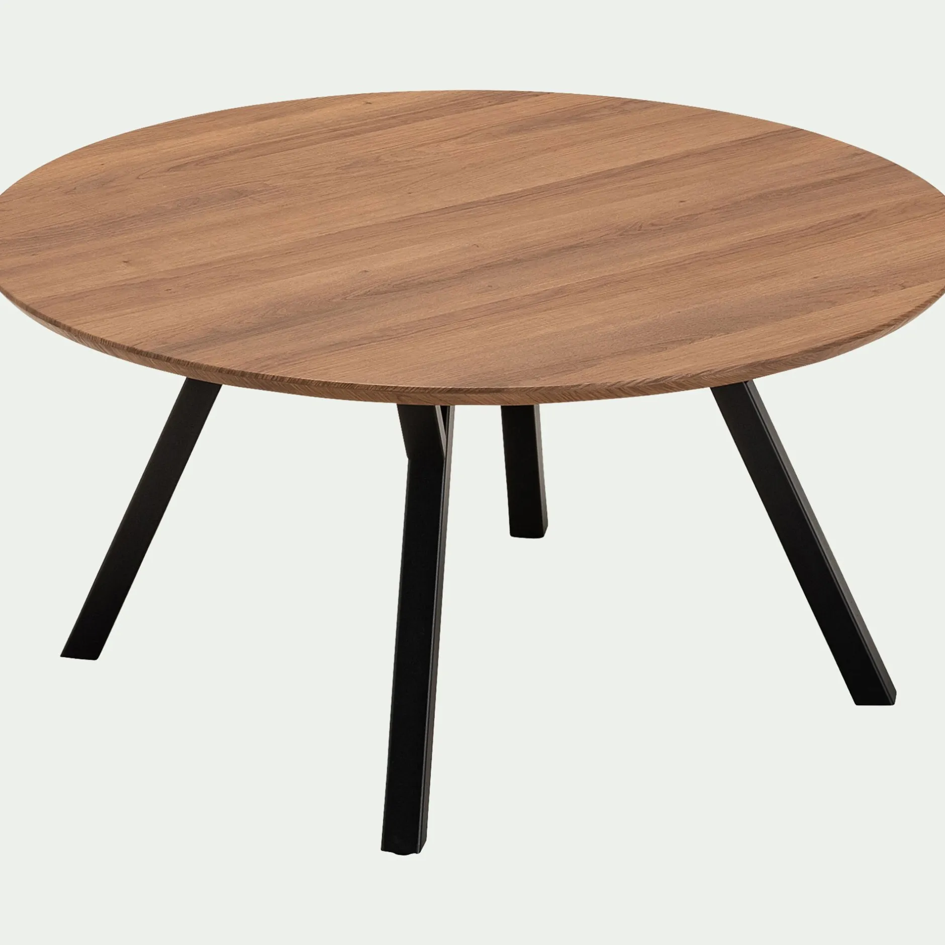Apportez douceur et caractère à votre salon avec la table basse Octovie. Cette table basse présente un grand plateau rond de 80 cm de diamètre. Ce dernier se tient à 40 cm de hauteur grâce aux quatre pieds biseautés. Le plateau en bois foncé se marie à merveille au piètement noir. Ces coloris neutres participent à un design intemporel et polyvalent. Cette table basse en bois convient aussi bien au style naturel, contemporain qu’industriel. Tout en rondeur, ce petit meuble inspire une décoration harmonieuse.