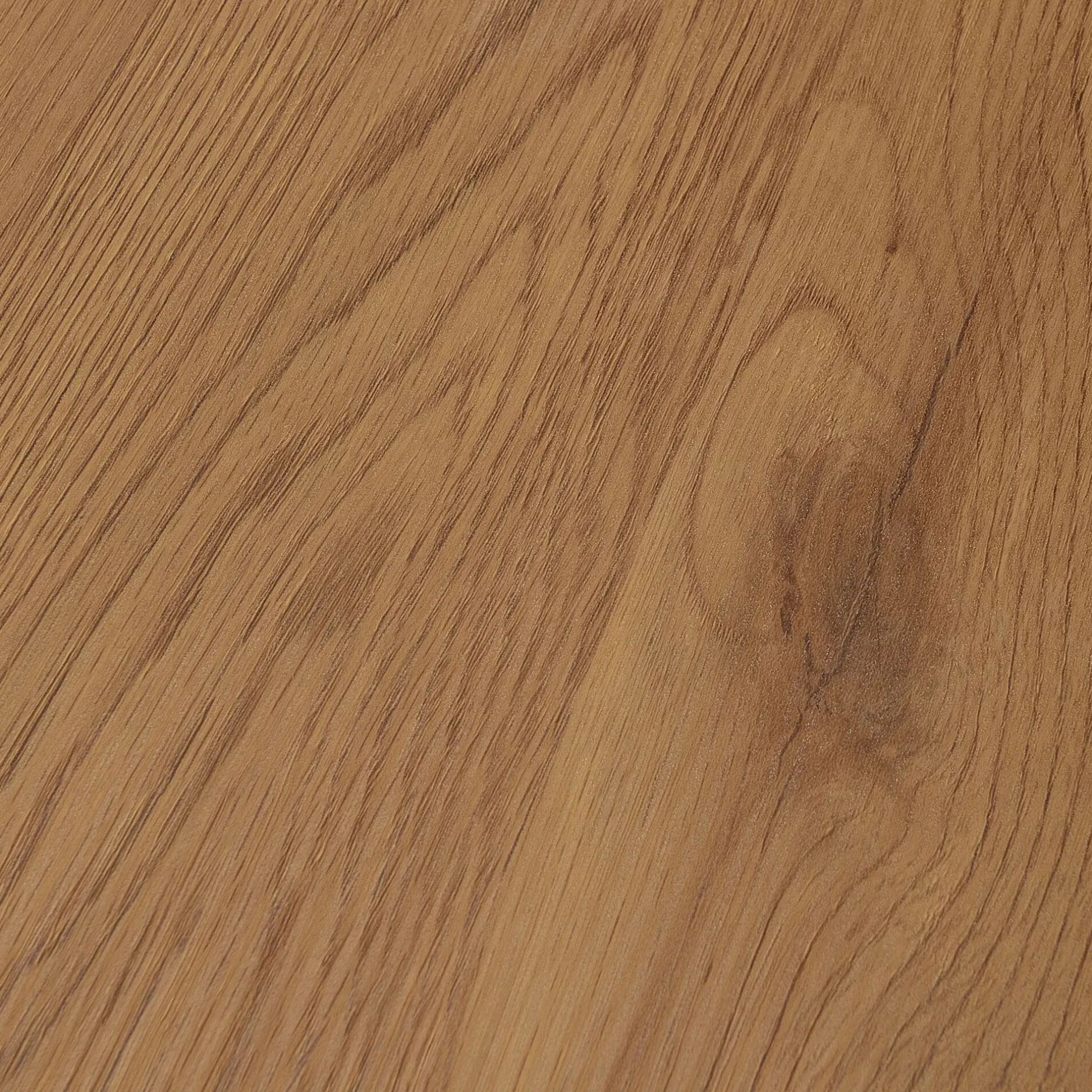 Panneau de fibres de moyenne densite et revêtement papier grain imitation chene (33 mm épaisseur). Piètement en acier peinture epoxy noir mat.