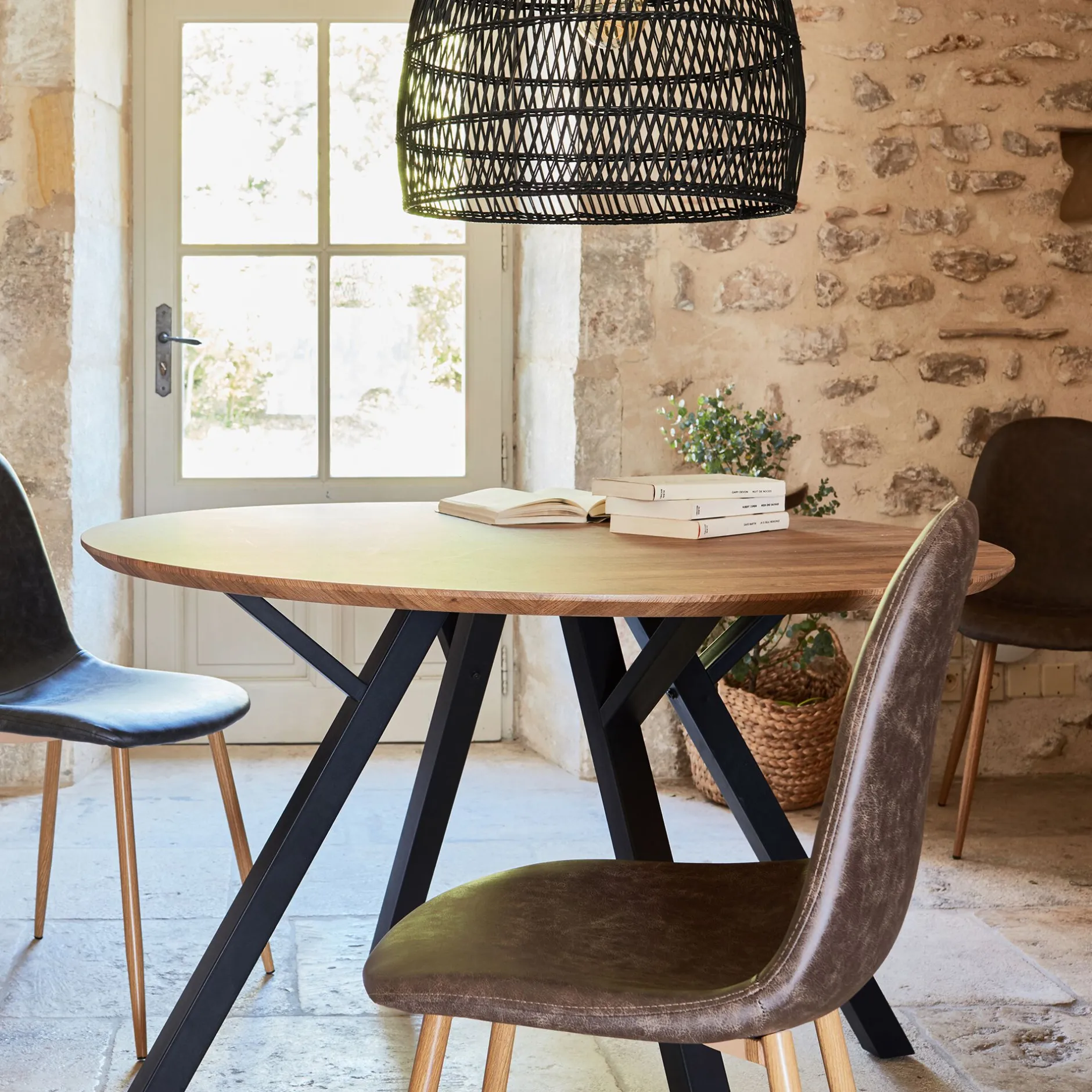La table Octavie est le mix parfait entre l’effet bois et le métal. Au-delà de son esthétique, cette table ronde est l’élément idéal pour apprécier de bons moments de partage. Son piètement en métal noir lui donnent du caractère et son grand plateau en bois effet chêne lui octroie beaucoup de personnalité et d’élégance. Vous pourrez asseoir de 4 personnes autour de son plateau, pour des moments inoubliables. Cette pièce est un véritable atout déco pour votre intérieur.