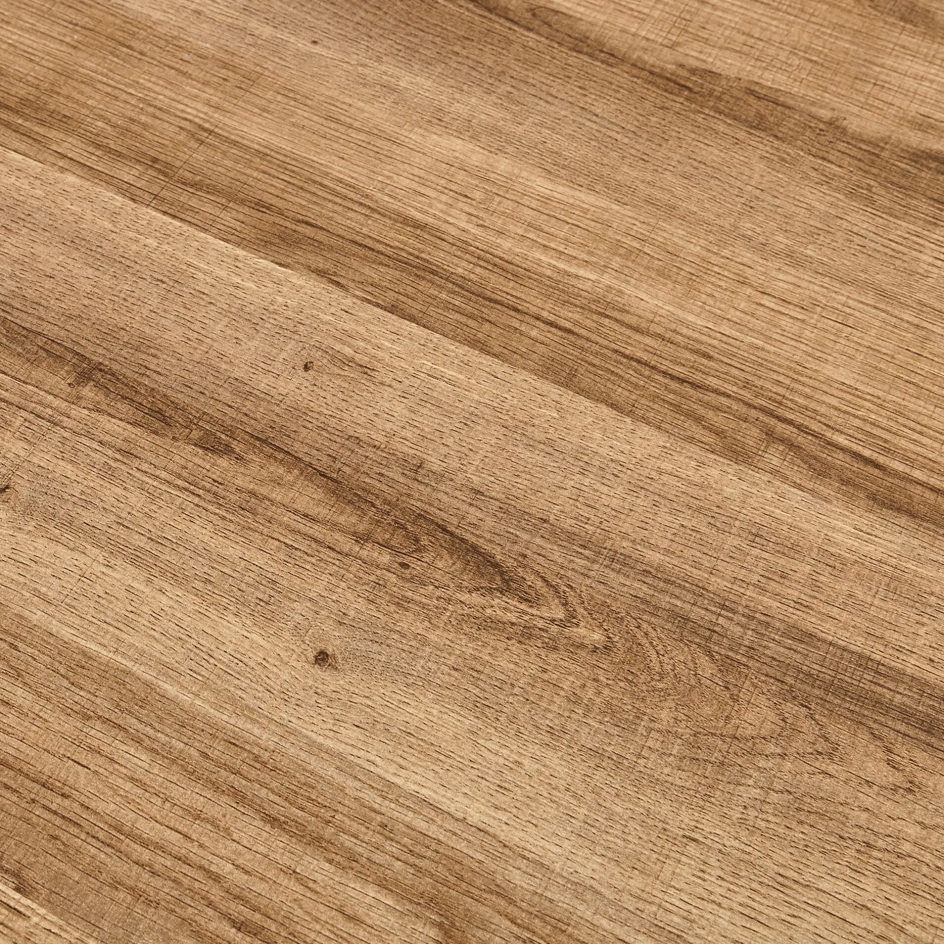 Plateau en panneau de fibres de moyenne densité, revêtement papier 3D imitation chêne, pieds en acier peinture epoxy noire.