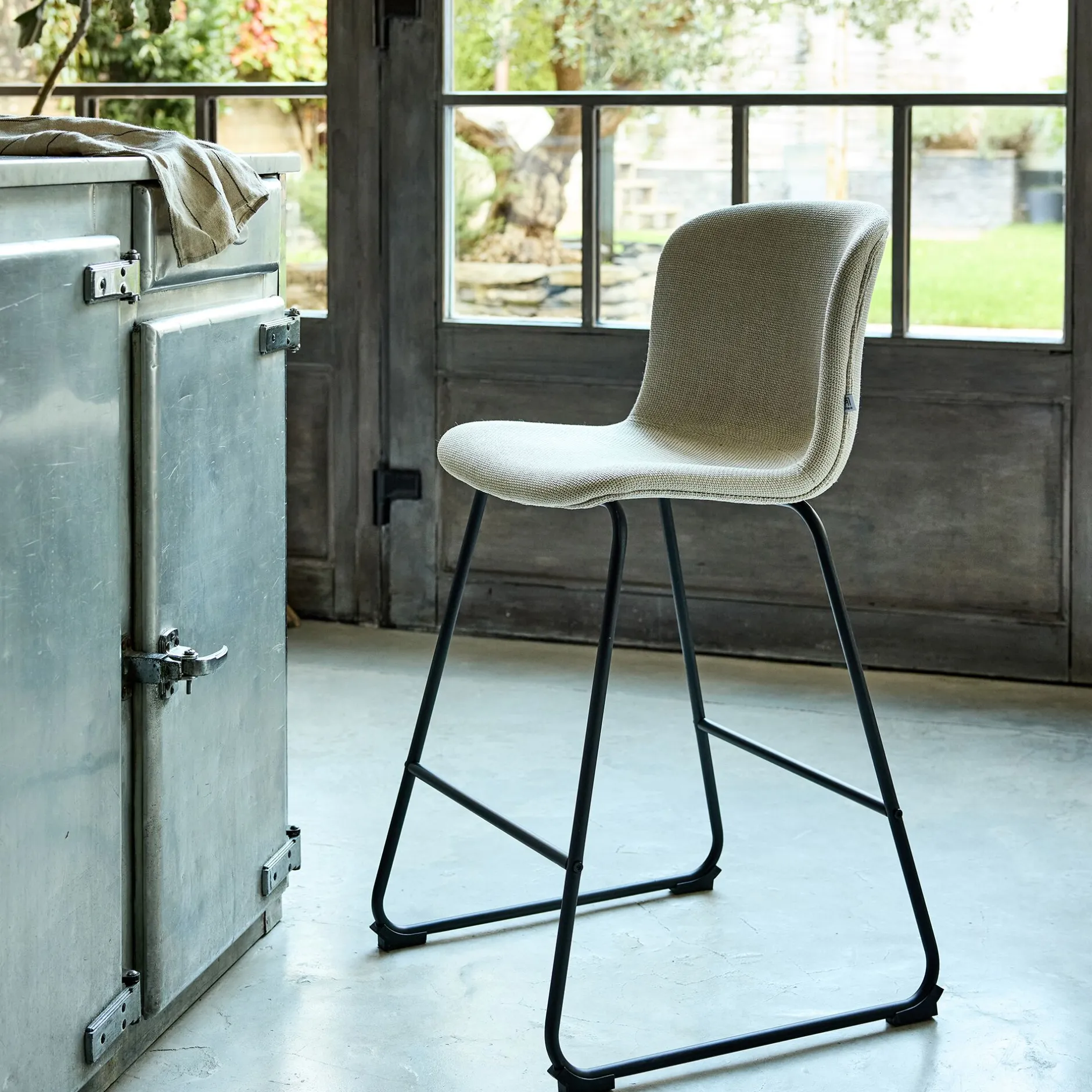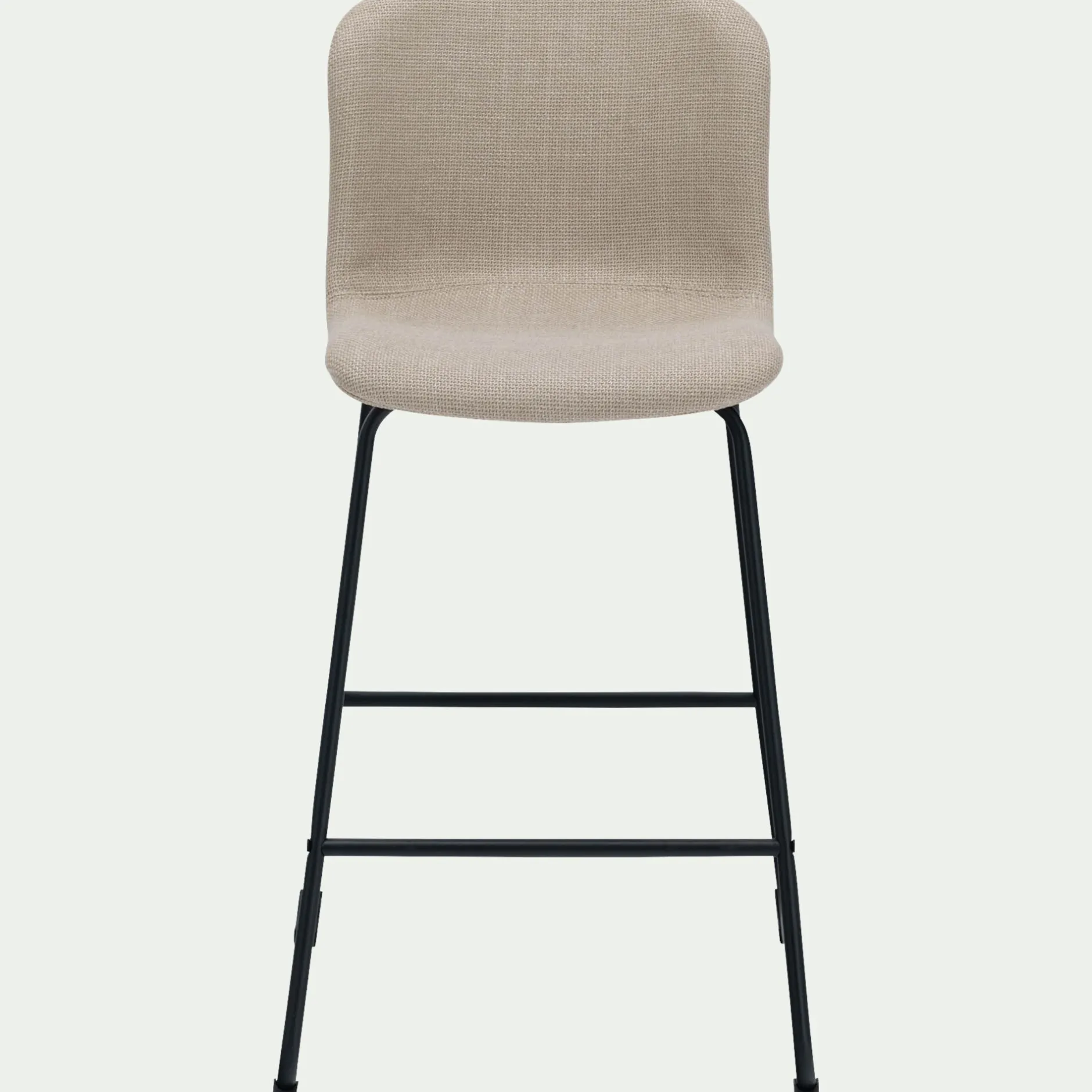 Idéale pour accompagner un comptoir de cuisine ou une table haute, cette chaise de bar affiche une hauteur d’assise de 66 cm, parfaite pour les moments conviviaux autour d’un îlot ou d’un bar. Son piètement en métal noir, à la fois fin et robuste, est équipé d’une barre repose-pieds pour un confort optimal. L’assise, généreusement rembourrée en mousse et habillée d’un tissu beige, offre un accueil moelleux et chaleureux. Avec ses lignes épurées et son allure contemporaine, ce tabouret haut allie fonctionnalité et élégance au quotidien.