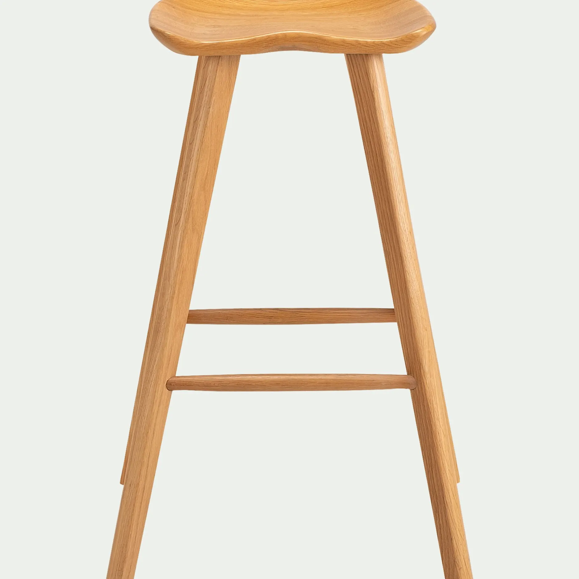 Tabouret de bar en chêne massif, finition vernis naturel.