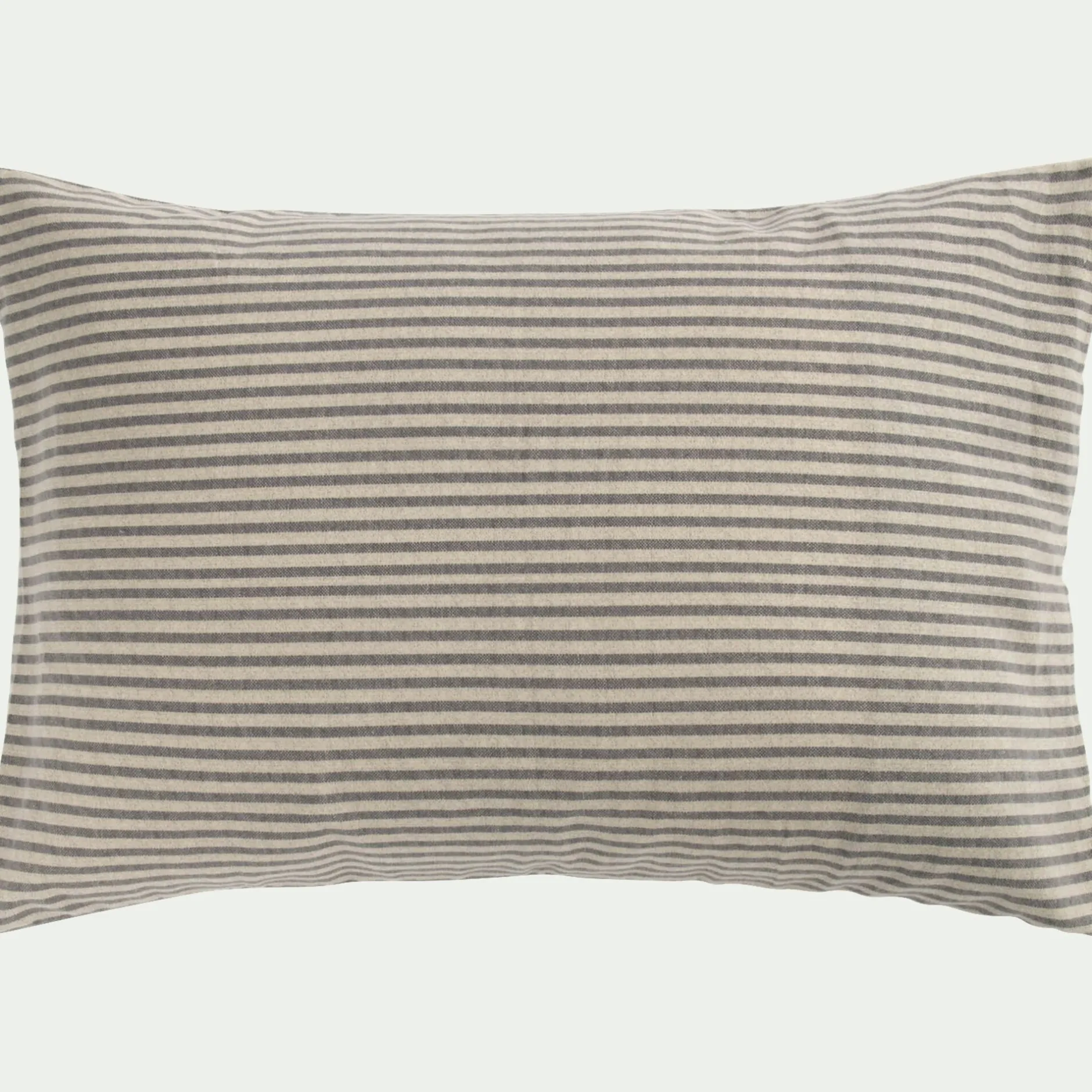 Apportez confort et sophistication à votre espace de sommeil avec nos taies d’oreiller rectangulaires en flanelle de coton rayée grise. Leur format allongé, idéal pour un soutien ergonomique, s’associe au toucher moelleux et à la chaleur réconfortante de la flanelle. Grâce à leur tissu dense et respirant, ces taies en 50×70 cm maintiennent une parfaite isolation tout en favorisant une sensation de légèreté. Le motif rayé, moderne et subtil, s’intègre avec élégance à votre literie, offrant une note de raffinement à votre chambre à coucher. Conçues pour le bien-être et la sérénité, ces taies sont idéales pour des nuits enveloppantes et douillettes. Associez-les à nos housses de couette de la même gamme afin de créer une belle parure de lit.