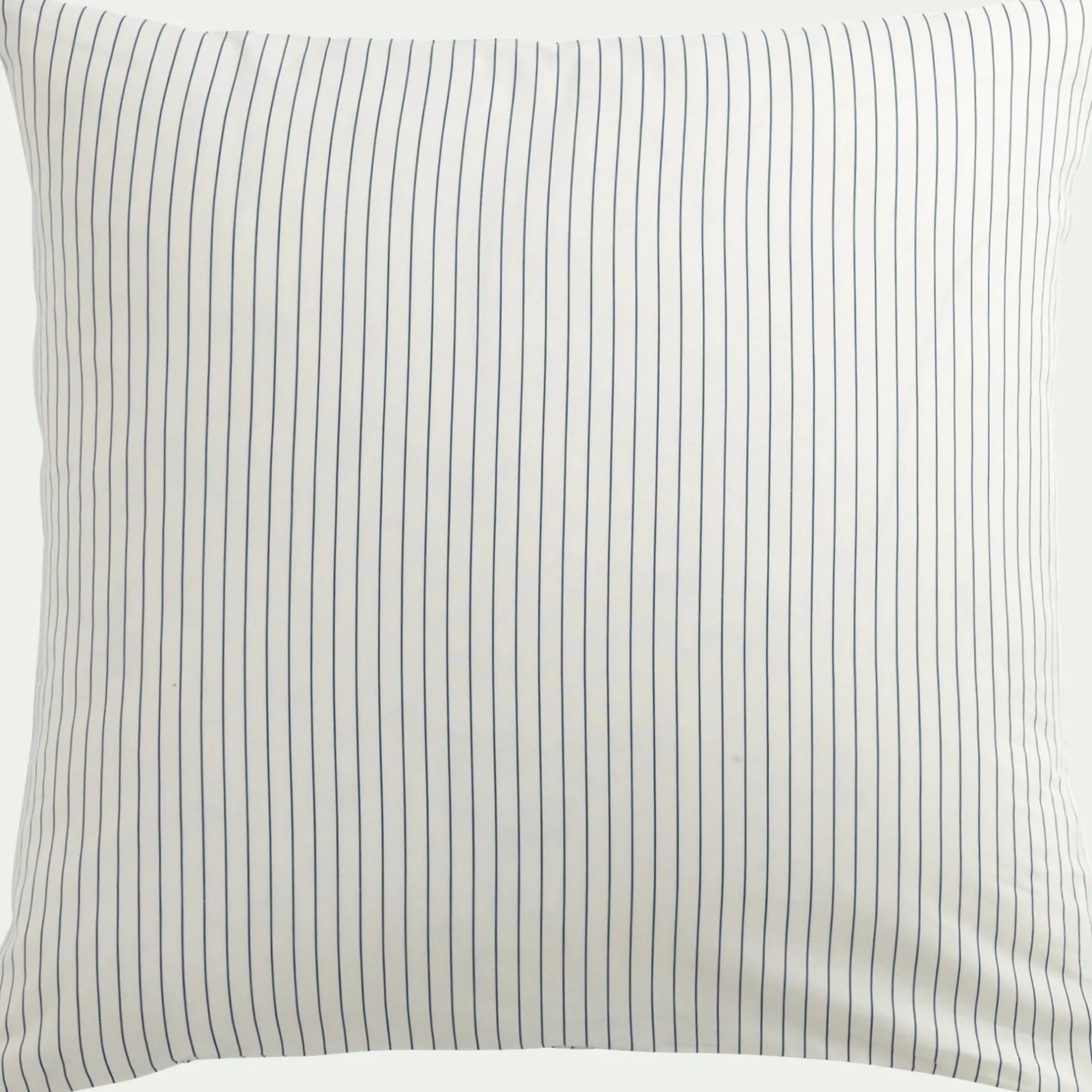 Ce lot de deux taies d’oreiller carrées (63×63 cm) arbore un motif de fines rayures bleues sur une base blanche, apportant une touche intemporelle et raffinée à la chambre. Douces et agréables au toucher, ces taies en coton offrent un confort optimal tout en étant respectueuses de la peau. Leur design élégant s’intègre aisément dans différents styles de décoration, ajoutant du charme à la literie.