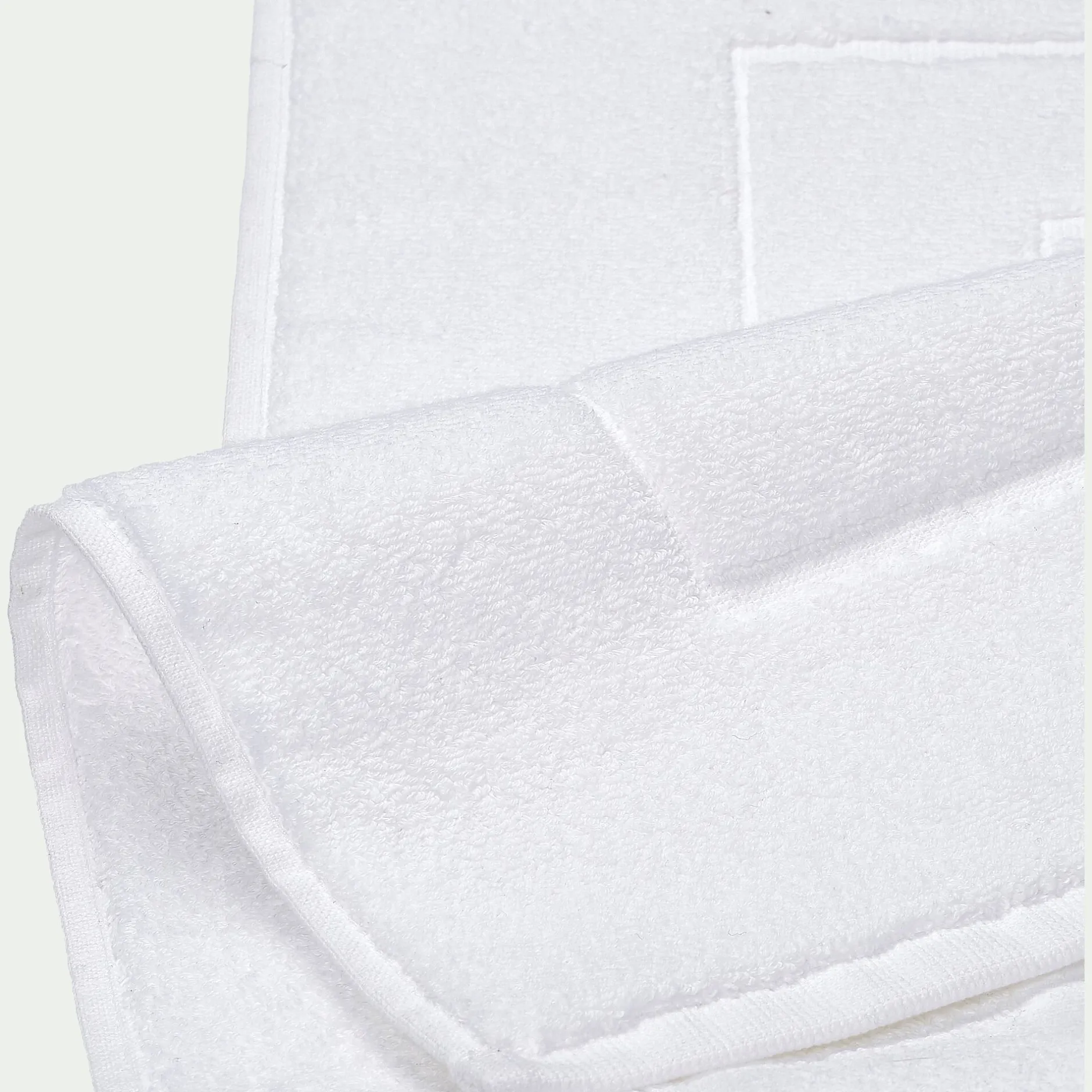 On saute le pas avec le maxi tapis de salle de bains Azur. Très tendance avec son format XL, il est aussi très utile pour les éclabousseurs compulsifs. On prolonge l’extase du bain en séchant nos pieds sur ce tapis en 100% coton de couleur blanche à l’allure minimaliste. Le sol reste sec et la salle de bains est sublimée avec cette teinte classique. Décliné en plusieurs coloris dans sa taille maxi, il est aussi disponible en différentes couleurs dans la dimension standard 50x80cm. Découvrez le reste de la gamme de linge de toilette Azur qui se compose de peignoirs, draps de douche, serviettes de bain et gants de toilette.