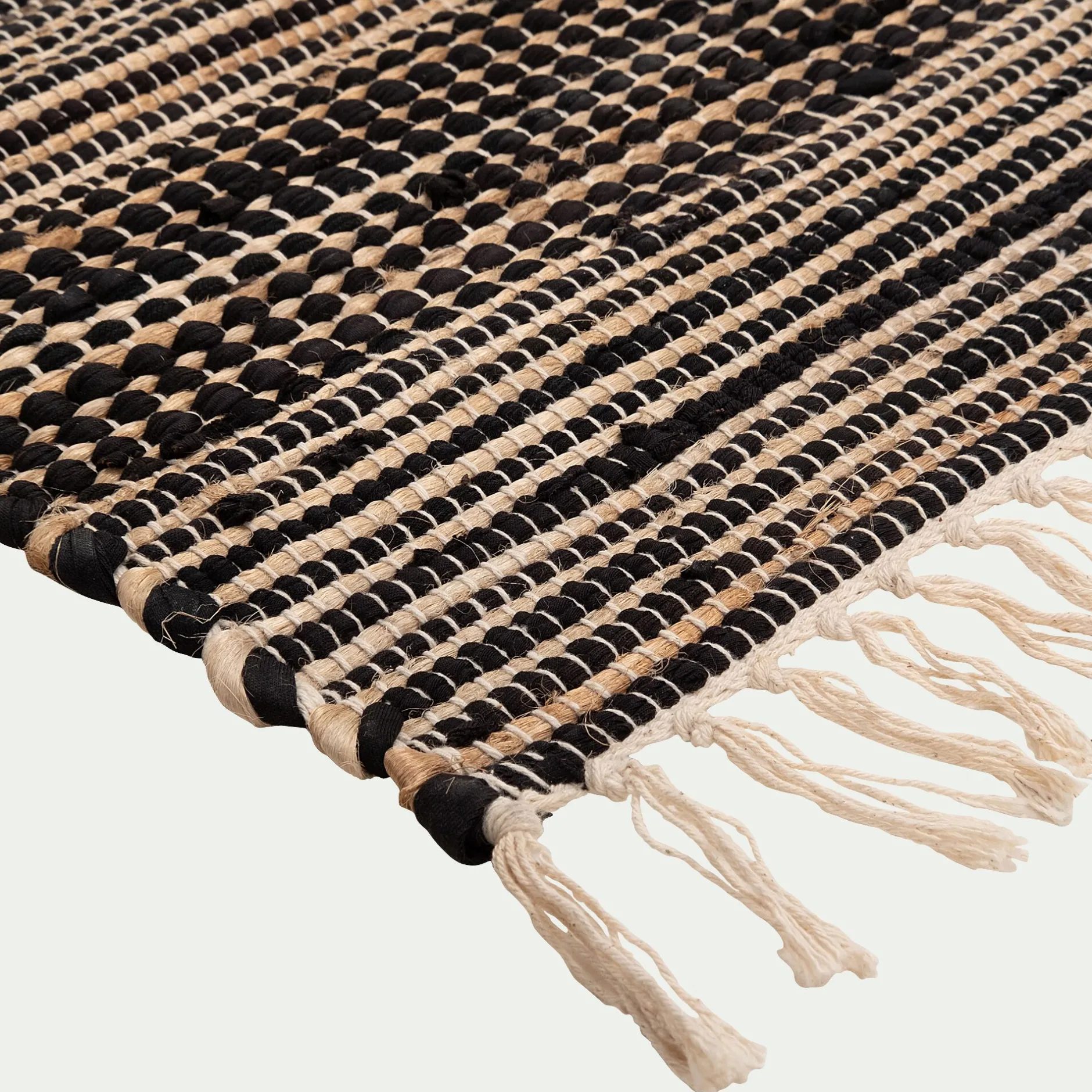 Découvrez le tapis Lieto et appréciez les détails du travail du tisserand. Des fibres de coton noir s’entremêlent à du jute naturel. Le noir et le beige s’épousent pour former de petits motifs irréguliers. Conçu à partir de matériaux 100% naturel, il a été fabriqué dans une démarche éco-responsable. Ce grand tapis se place sous une table basse ou dans votre bureau pour créer un espace cocooning. Pour un beau rendu, associez ce tapis à une déco plus lumineuse et colorée afin de ne pas étouffer la pièce.