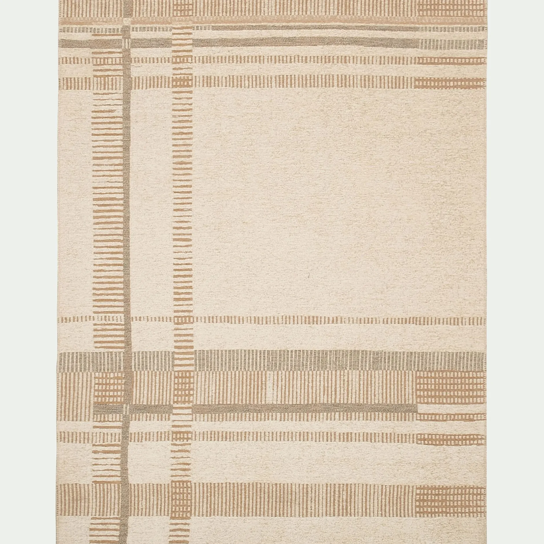Le tapis Homere est parfait pour décorer votre pièce. Aussi bien dans le salon, que dans la chambre ou dans la salle à manger, ce tapis en tissu recyclé donnera du cachet à votre maison. Son motif linéaire et sa couleur beige lui confèrent son aspect à la fois moderne et chaleureux qui lui permettent de s’adapter à tous les styles de décorations. Ce grand tapis moelleux de 160×230 cm offre une touche de confort supplémentaire à toute pièce. Sa forme rectangulaire vous permet de le positionner devant votre canapé, sous votre table basse ou encore devant votre lit. Il s’adaptera parfaitement à tous les styles d’intérieur.