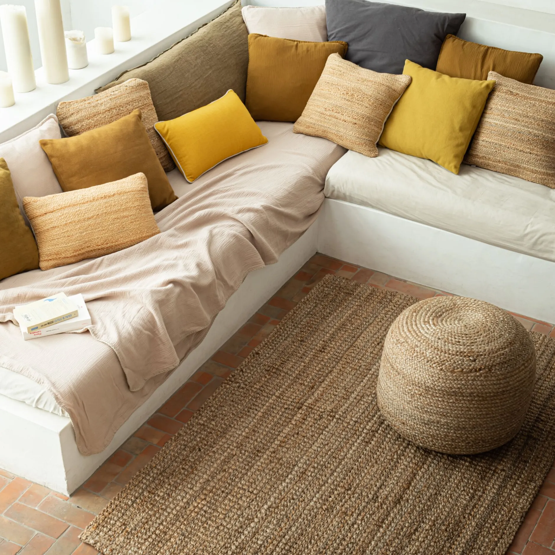 Optez pour ce tapis afin d’insuffler une déco légère et naturelle dans votre maison. Ce tapis 100% en jute, saura apporter du charme à votre intérieur. Particulièrement résistant, le jute est à la fois ferme et souple. Ce tapis s’intégrera aisément à tous les styles et installera une ambiance chaleureuse chez vous. D’une belle taille, ce tapis trouvera sa place dans la pièce de vie. Il existe en plusieurs tailles.
