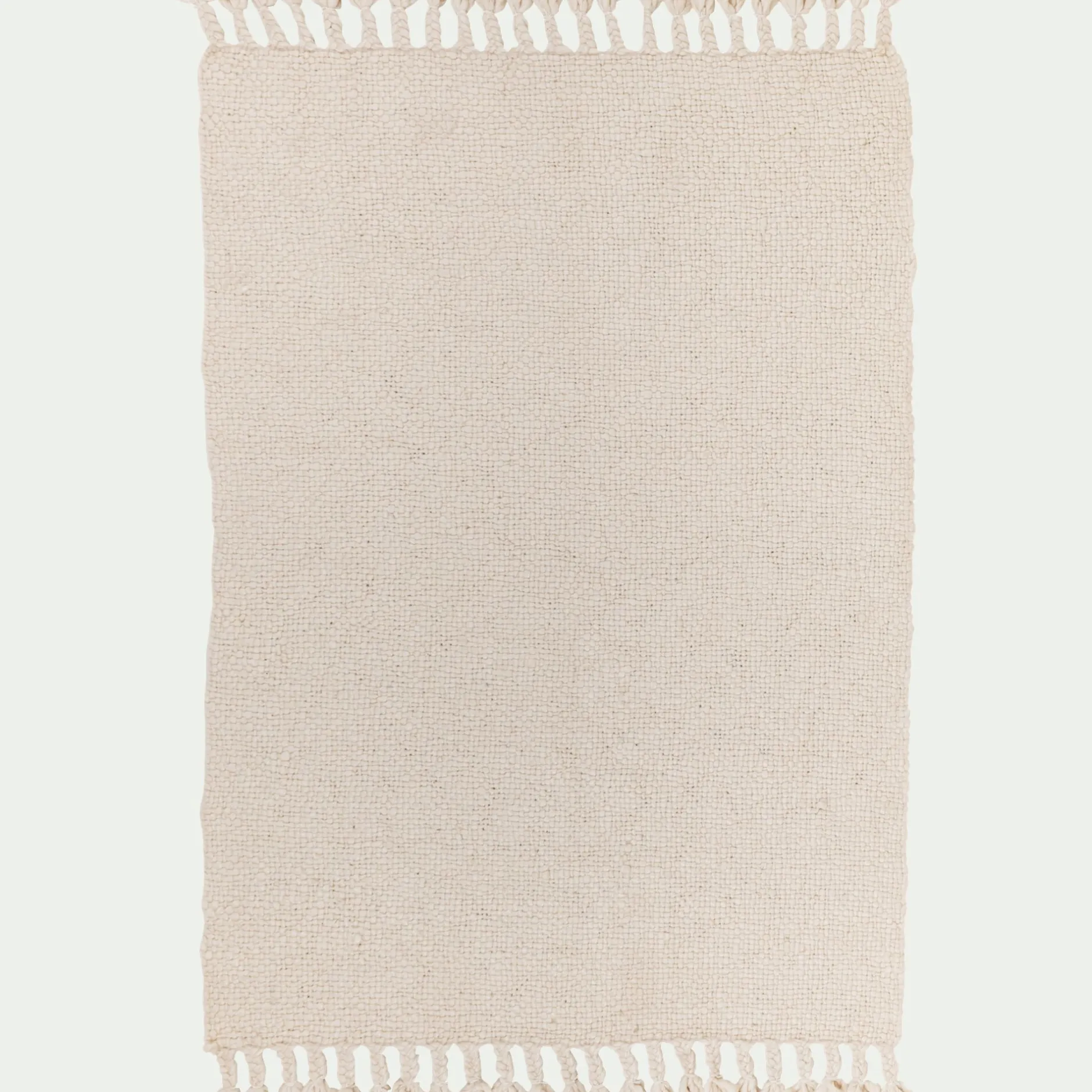 Le tapis Mala est principalement composé de laine dans un coloris naturel, oscillant entre blanc cassé et crème. Son tissage en grosse maille renforce son côté cocooning, créant une atmosphère chaleureuse et réconfortante. Idéal pour un salon ou une chambre, ce tapis de 120×170 cm invite à la détente. Ses pompons tressés aux extrémités apportent une touche bohème, parfaite pour un intérieur accueillant.
