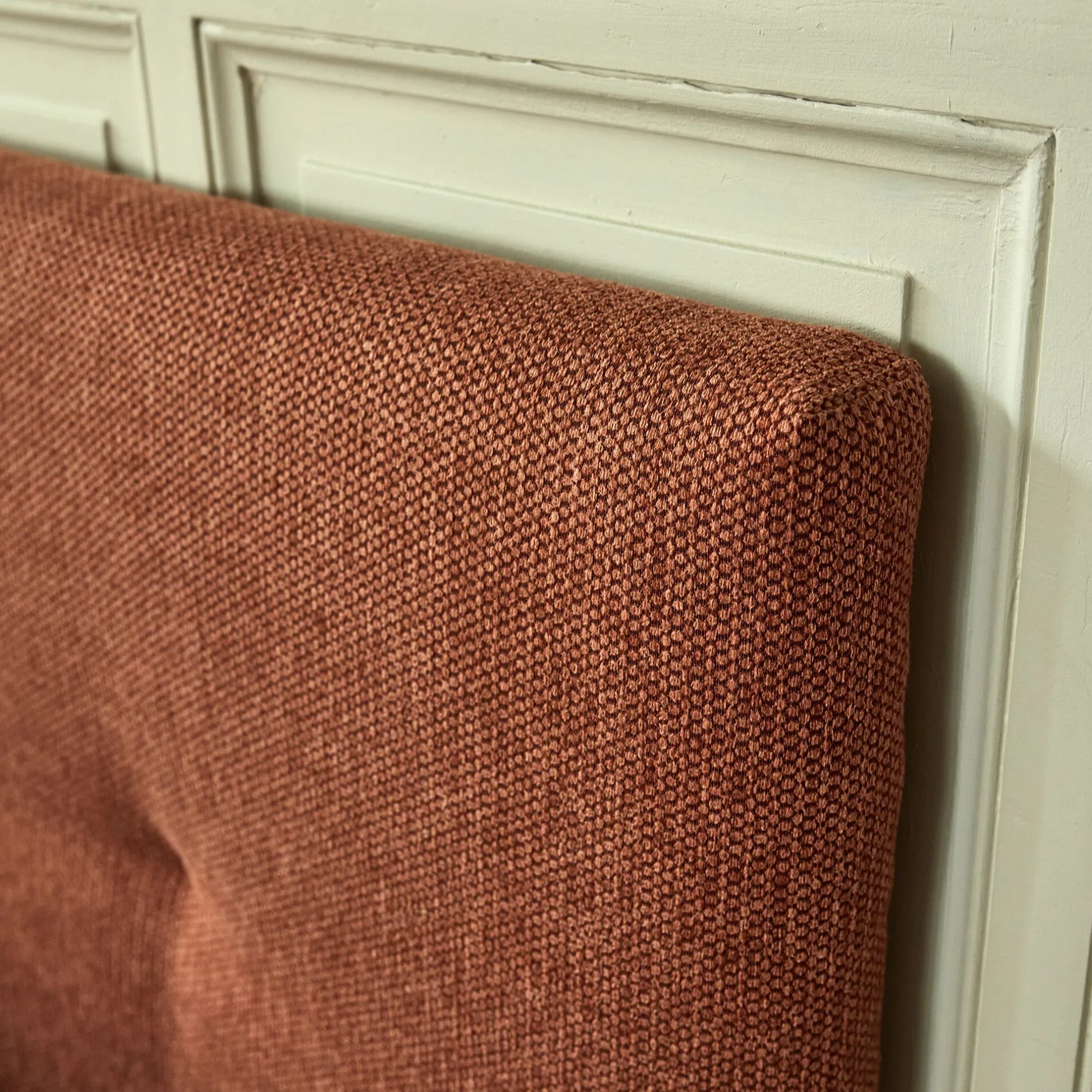 Habillez votre chambre d’une touche de caractère avec cette tête de lit terracotta de 182 cm. Son capitonnage raffiné et sa silhouette épurée apportent une ambiance cosy et contemporaine à la déco de votre chambre à coucher. Conçue en bois massif, rembourrée de ouate et revêtue d’un tissu doux, elle offre un confort enveloppant au quotidien. Réglable en hauteur, elle s’ajuste facilement à votre lit pour un rendu sur mesure. Fabriquée en Roumanie, elle incarne un style intemporel aux finitions soignées.