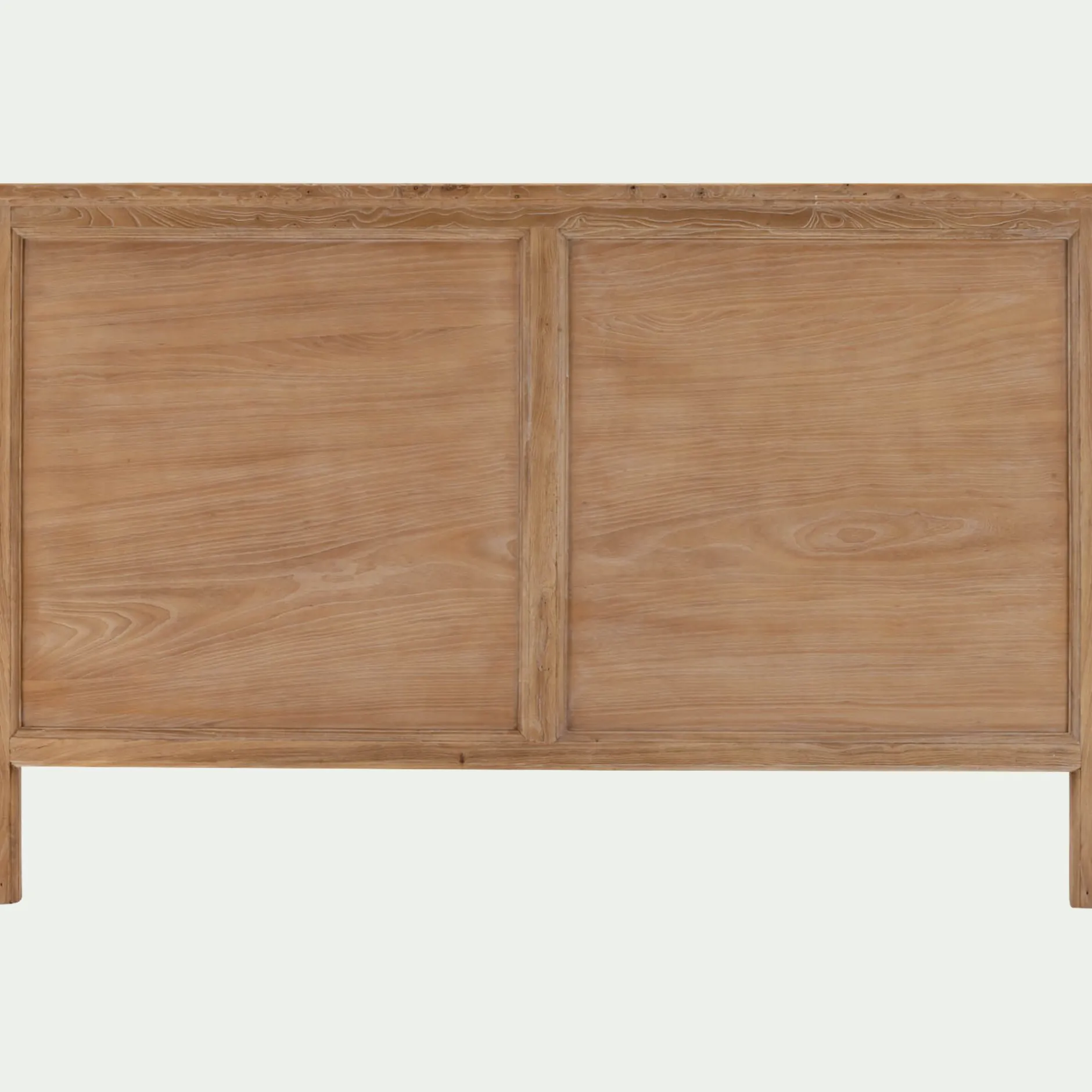 Avec ses 174 cm de large, la tête de lit Alysse habille le mur avec sobriété et caractère. Confectionnée en bois d’orme, elle met en valeur les veinures naturelles de cette essence claire, légèrement blanchies pour un effet patiné. Un look vieilli plein de charme qui s’accorde parfaitement à un intérieur de style bord de mer ou cottage, où l’authenticité règne en maître.