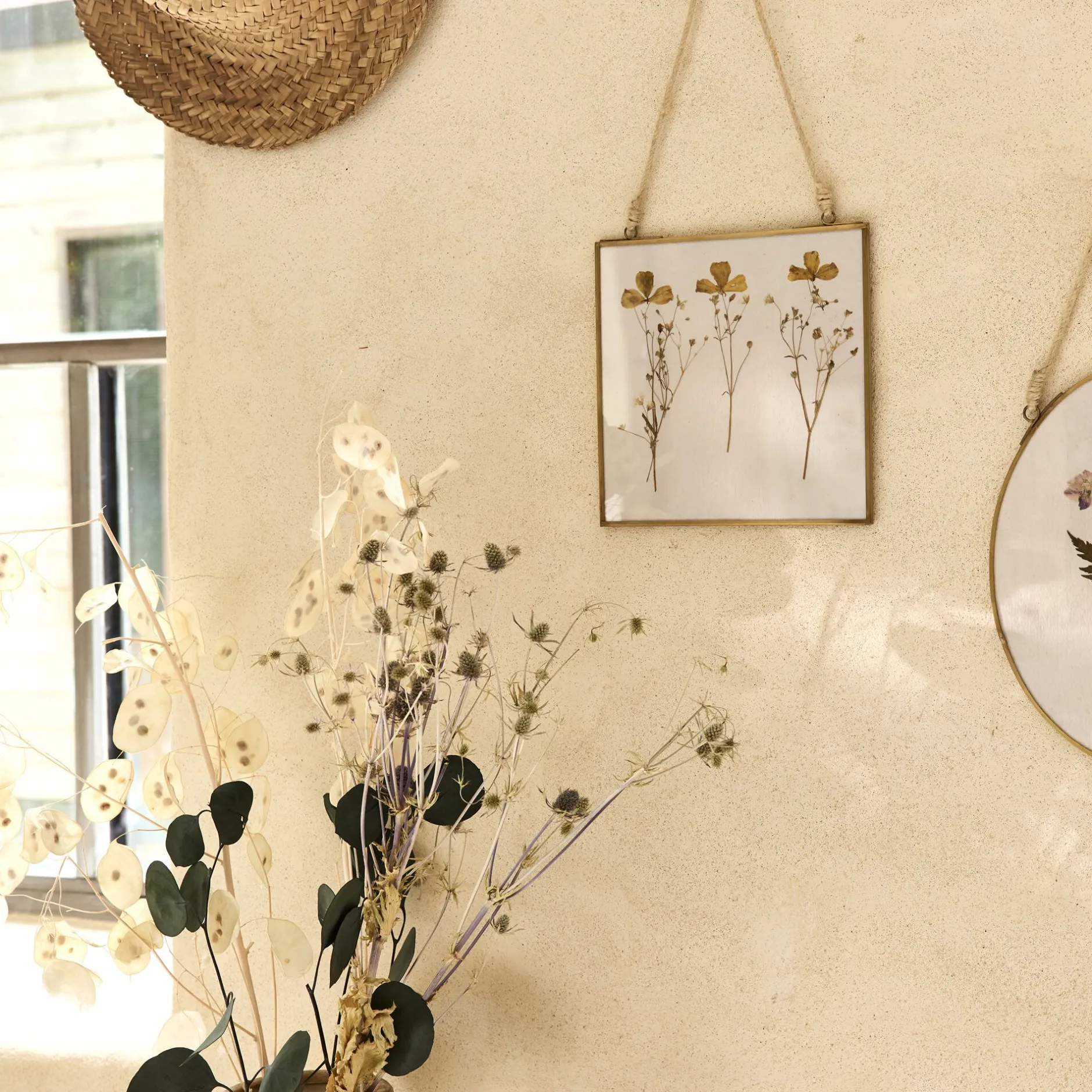 Toile, Tableau Et Affiche*alinea Cadre décoratif avec fleurs séchées 20x20cm – Doré