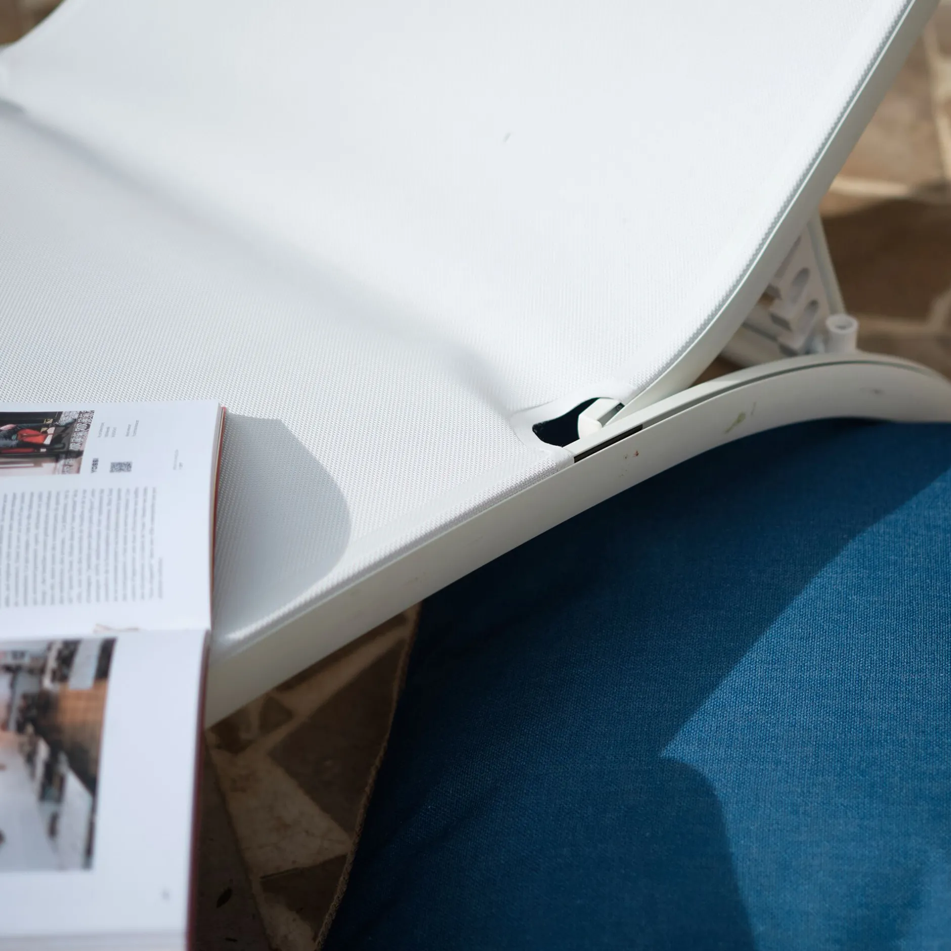 Ce bain de soleil combine design épuré et fonctionnalité. Sa structure en aluminium, légère et résistante, s’accompagne d’une assise en textilène souple et durable, parfaite pour l’extérieur. Le dossier réglable sur 5 positions et le repose-tête intégré garantissent un confort optimal. Grâce à ses roulettes, il se déplace aisément entre soleil et ombre. Avec son coloris blanc, ce transat apporte une touche chic et moderne à l’espace.