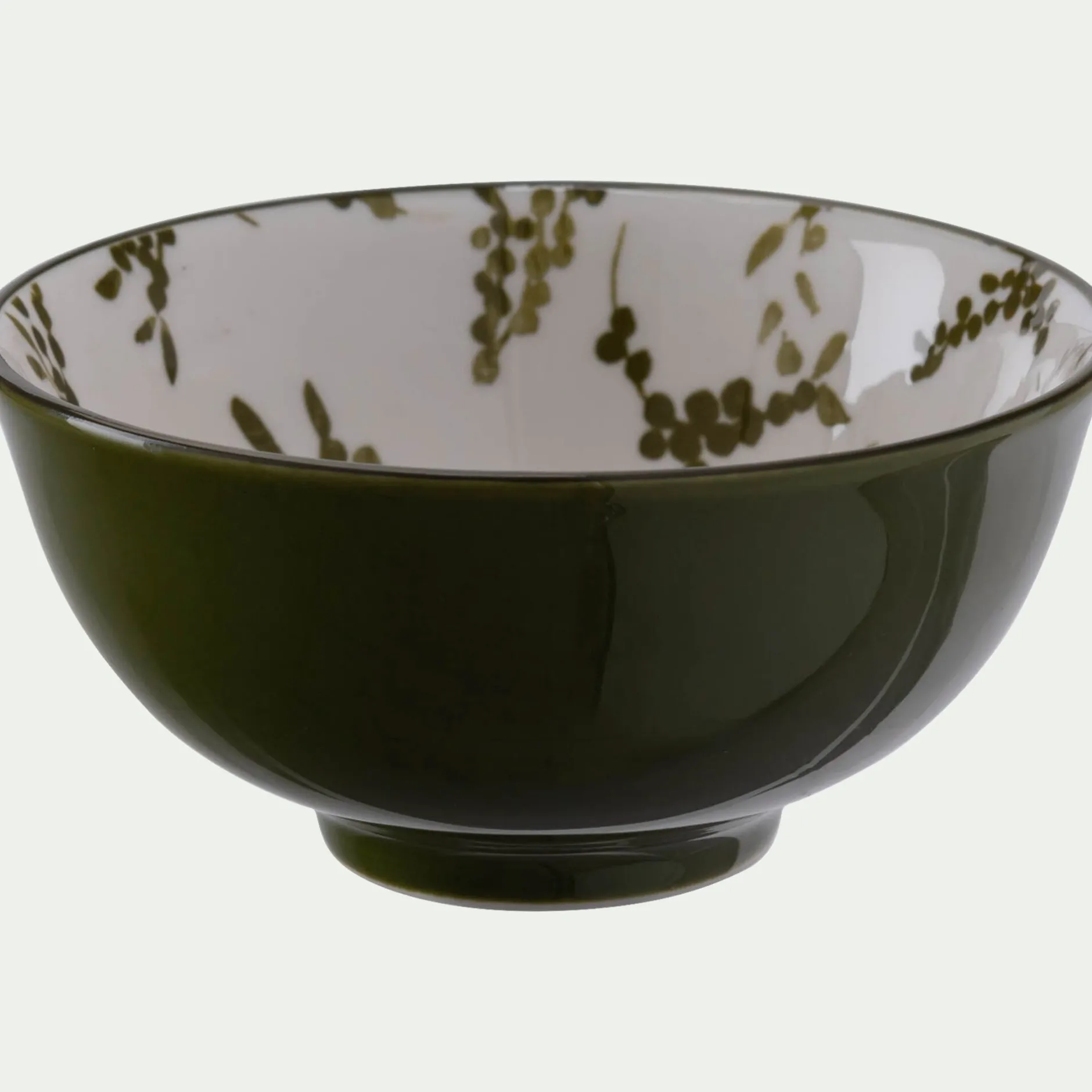 La coupelle Baia joue les contrastes avec élégance. À l’extérieur, un coloris vert habille la porcelaine d’un aplat uniforme. À l’intérieur, un motif végétal délicat se déploie sur fond blanc, comme une surprise au creux de l’émail. Pratique au quotidien, cette petite coupelle ajoute une touche graphique à la présentation d’une sauce, d’un dessert ou d’un en-cas.
