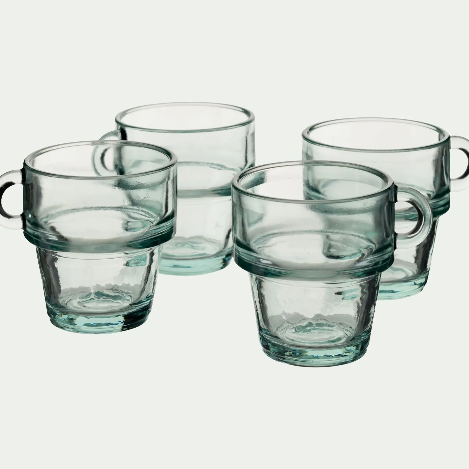 Découvrez ce lot de 4 tasses en verre, pour savourer vos boissons chaudes. La transparence et le design intemporel de ses tasses de 10 cl apportent une touche de raffinement à votre table de petit-déjeuner. Fabriquée en Espagne, cette collection de vaisselle au charme unique vous accompagnera à tous moments de la journée.